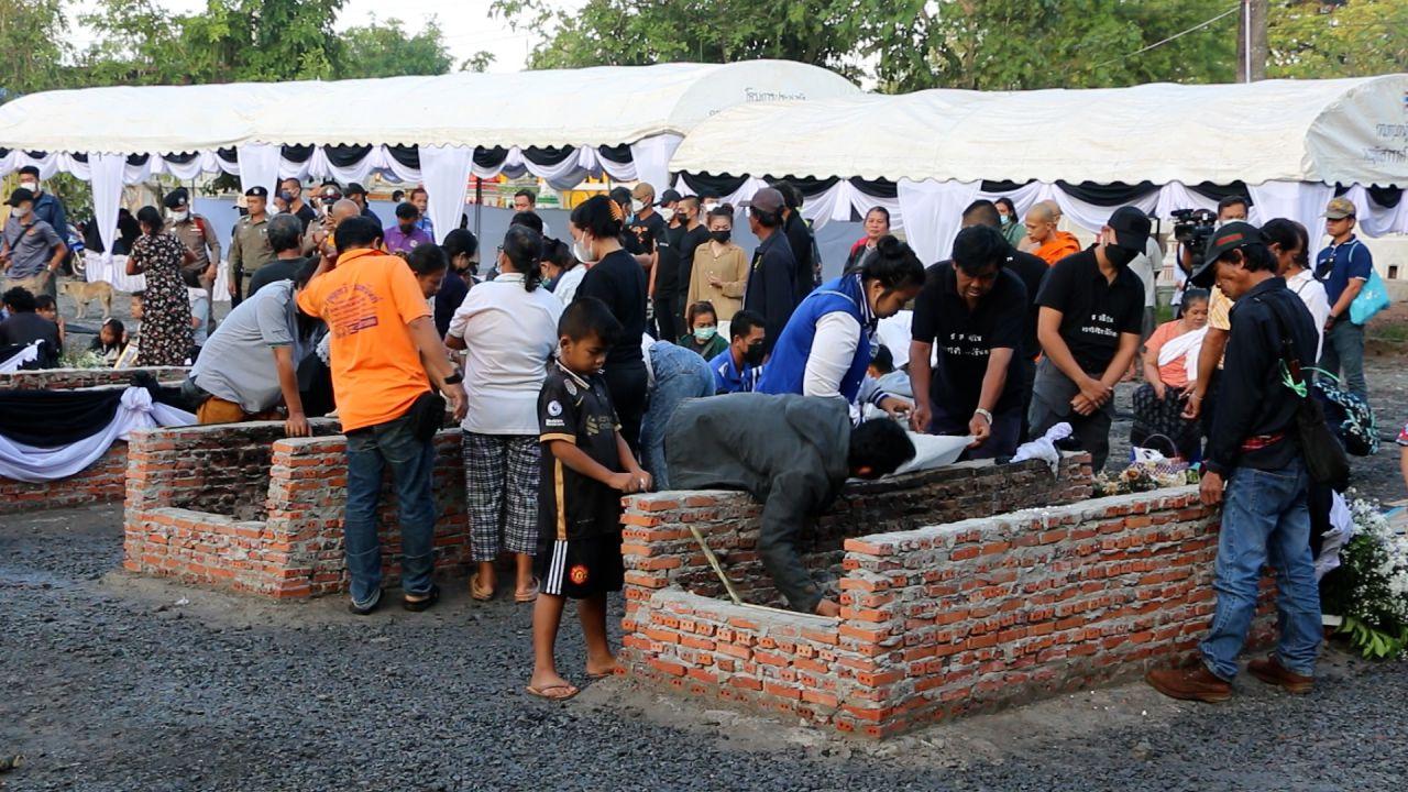 เมื่อเวลา 06.00 น. วันที่ 12 ต.ค. 2565 ที่วัดราษฎร์สามัคคี บ้านหนองกุงศรี หมู่ 10 ต.อุทัยสวรรค์ อ.นากลาง จ.หนองบัวลำภู หลังเสร็จสิ้นพิธีฌาปนกิจเมื่อคืนที่ผ่านมา ญาติๆ ของทั้ง 19 รายได้เดินทางมาทำพิธีเก็บเถ้ากระดูกของผู้เสียชีวิตจากเหตุการณ์ฆาตกรรมหมู่ภายในศูนย์พัฒนาเด็กเล็กตำบลอุทัยสวรรค์ เมื่อวันที่ 6 ต.ค. 65 ที่ผ่านมา