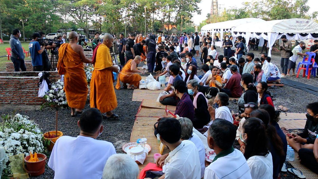 โดยหลังจากเก็บเถ้ากระดูกออกมาจากเตาเผาเชิงตะกอน พระสงฆ์ได้นำน้ำบริสุทธิ์มาประพรมเถ้ากระดูกที่ญาตินำขึ้นมาจากเตาเผาแบบเชิงตะกอน มีผ้าเป็นตะแกรงรองเถ้ากระดูกก่อนจะห่อกระดูกด้วยผ้าขาว นำลงหม้อดินที่จัดเตรียมมา แล้วนำสายสิญจน์มามัดปากหม้อ พร้อมทั้งนำกระดูกเก็บบรรจุไว้ภายในธาตุ หรือโกศ จากนั้นพระสงฆ์จะโยงสายสิญจน์พร้อมกับสวดทำพิธี ก่อนที่พระสงฆ์และญาติโยมจะร่วมกันทำบุญตักบาตร อุทิศส่วนกุศลให้กับผู้เสียชีวิตจากเหตุการณ์สลดนี้ทุกศพ ภายในศาลาการเปรียญของวัดราษฎร์สามัคคี ซึ่งมีทั้งครอบครัวและญาติผู้เสียชีวิต พร้อมทั้งชาวบ้านมาร่วมทำบุญตักบาตรในวันนี้