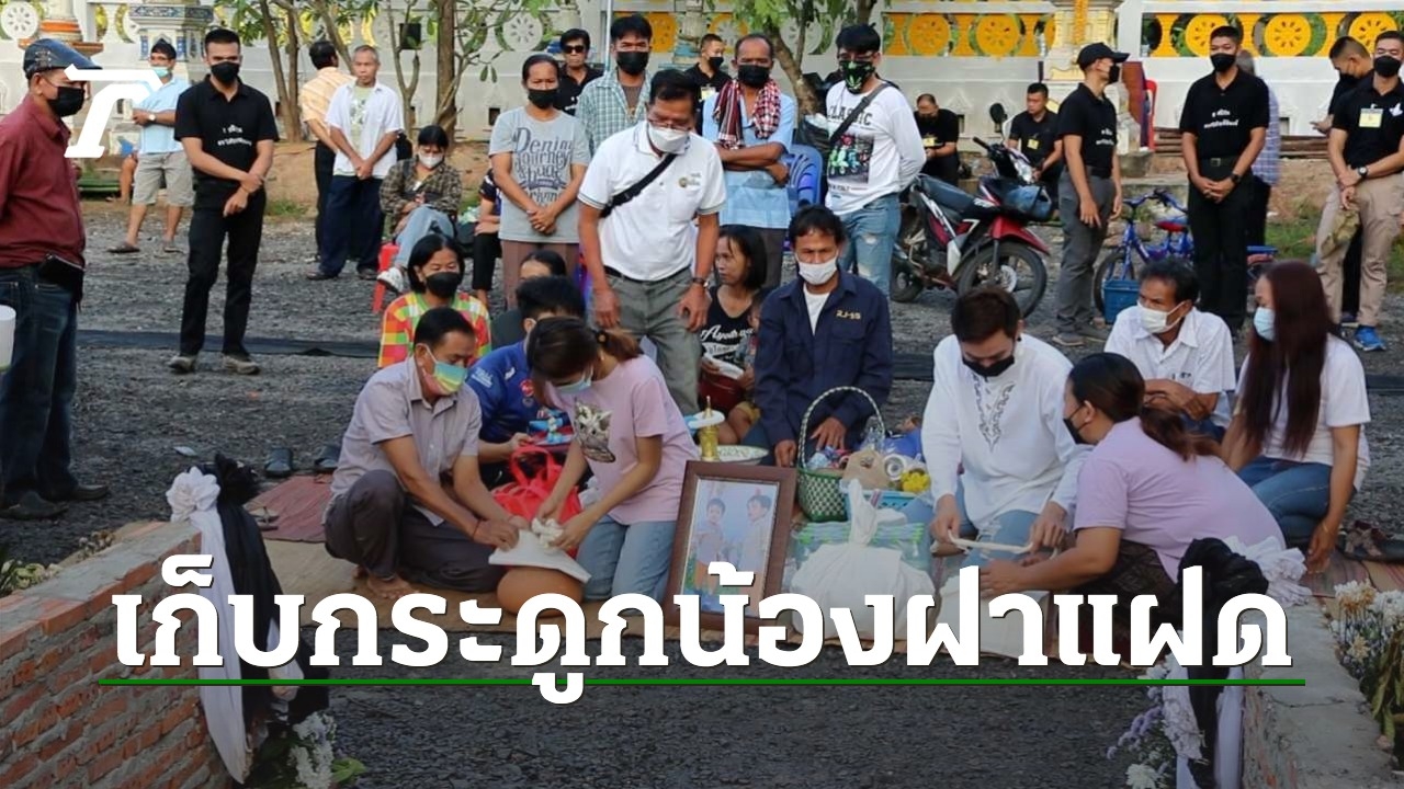 ขณะที่ ครอบครัวของน้องฝาแฝด ก็เดินทางมาเก็บเถ้าอัฐิตั้งแต่ช่วงเช้า โดยญาติของน้องบอกว่าจะเก็บอัฐิของน้องไว้ 100 วันก่อน เพื่อทำบุญอุทิศส่วนบุญส่วนกุศลให้น้อง ก่อนจะบรรจุอัฐิตามขั้นตอน นอกจากนี้ คุณยายของน้องฝาแฝด เปิดเผยว่า เจ้าน้ำตาล สุนัขเพื่อนซี้ที่เลี้ยงเติบโตมาพร้อมกับน้องทั้ง 2 คน เมื่อคืนส่งเสียงหอนคล้ายกับร้องไห้โหยหวนเรียกหาน้องตลอดคืน ก่อนจะติดตามมาทำพิธีเก็บเถ้าอัฐิในเช้าวันนี้