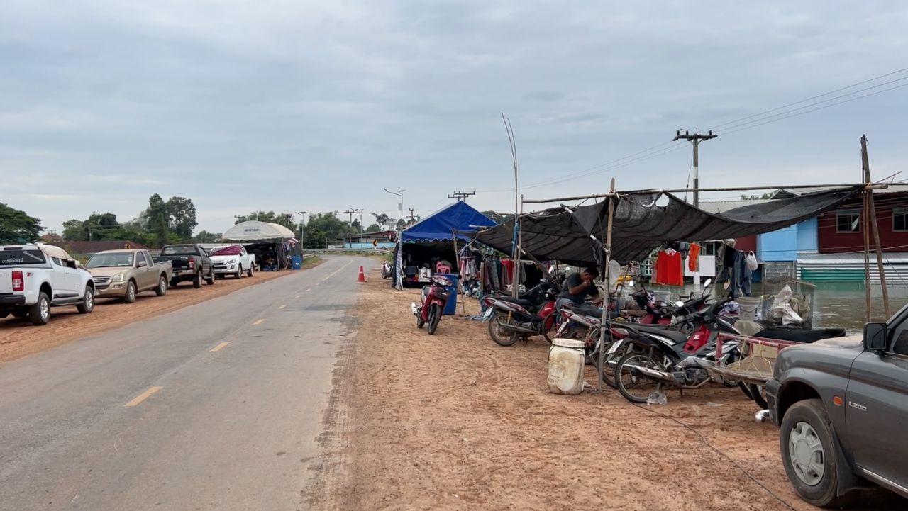 สอบถาม นางอนงค์ จักรสุรินทร์ เปิดเผยว่า ตนได้ขึ้นมาอาศัยอยู่บนถนนคันพนังเกือบ 1 เดือน เนื่องจากน้ำท่วมบ้านปประมาณ 1 เมตร ส่วนถนนเข้าหน้าบ้านน้ำสูงประมาณ 2 เมตร ทำให้ไม่สะดวกในการเข้าไปพักอาศัย จึงต้องมาสร้างเพิงพักพอได้หลับนอนกับครอบครัวอีก 4 คน ส่วนไร่นาที่มีอยู่ 8 ไร่ ก็ถูกน้ำท่วมเสียหายทั้งหมด ก็ต้องรับถ่านไปเร่ขายเพื่อนำเงินมาจุนเจือครอบครัว หลังจากน้ำลดก็อยากให้หน่วยงานภาครัฐช่วยเยียวยาซ่อมแซมบ้านที่ได้รับความเสียหายจากอุทกภัยในครั้งนี้.