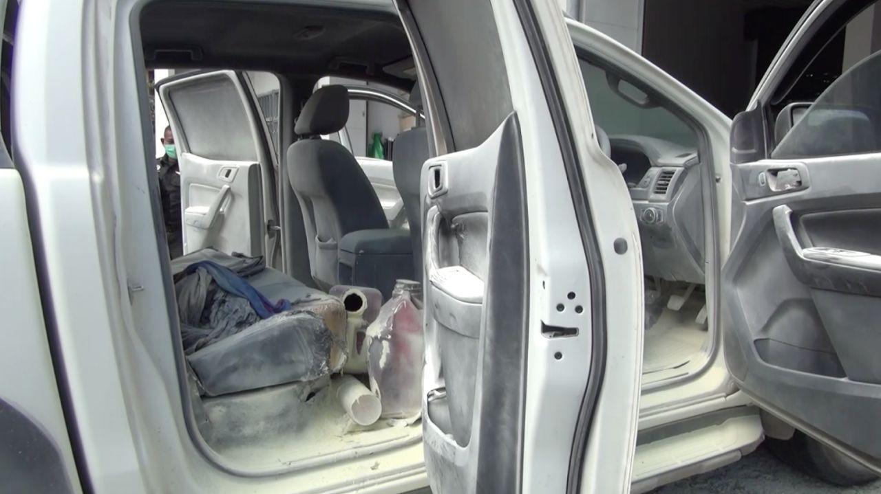 ขณะที่ พ.ต.อ.ศิริวัฒน์ สมกิจศิริ ผู้กำกับการ สภ.เมืองบุรีรัมย์ และเจ้าหน้าที่ชุดสืบสวน สภ.เมืองบุรีรัมย์ ก็ได้ลงพื้นที่ตรวจสอบที่เกิดเหตุ ร่วมกับพนักงานสอบสวน ซึ่งจากการตรวจสอบภายในรถยนต์คันเกิดเหตุ พบขวดเหล้าขาวที่ถูกเปิดดื่มไปแล้ว 1 ขวดตั้งอยู่ช่องเก็บของข้าคนขับ พร้อมเงินจำนวนหนึ่ง บนเบาะด้านหลังฝั่งคนขับพบผ้าขนหนู 2 ผืน กระเป๋าสำหรับใส่เอกสารสีดำ 1 ใบ ที่วางเท้ายังพบแกลลอนน้ำมัน 2 แกลลอน เปิดใช้แล้ว 1 แกลลอน, พลุไฟ 3 แท่ง ใช้แล้ว 1 แท่ง, ประทัด 1 กล่อง ทั้งนี้ด้านหลังกระบะยังพบแกลลอนบรรจุน้ำมัน 3 แกลลอน เปิดฝาทิ้ง 2 แกลลอน ยังไม่เปิด 1 แกลลอน แต่ยังมีน้ำมันเต็มทุกแกลลอน ส่วนสำนักงานบังคับคดีมีเพียงประตูเหล็กด้านหน้าที่ถูกรถพุ่งชนได้รับความเสียหายเล็กน้อย