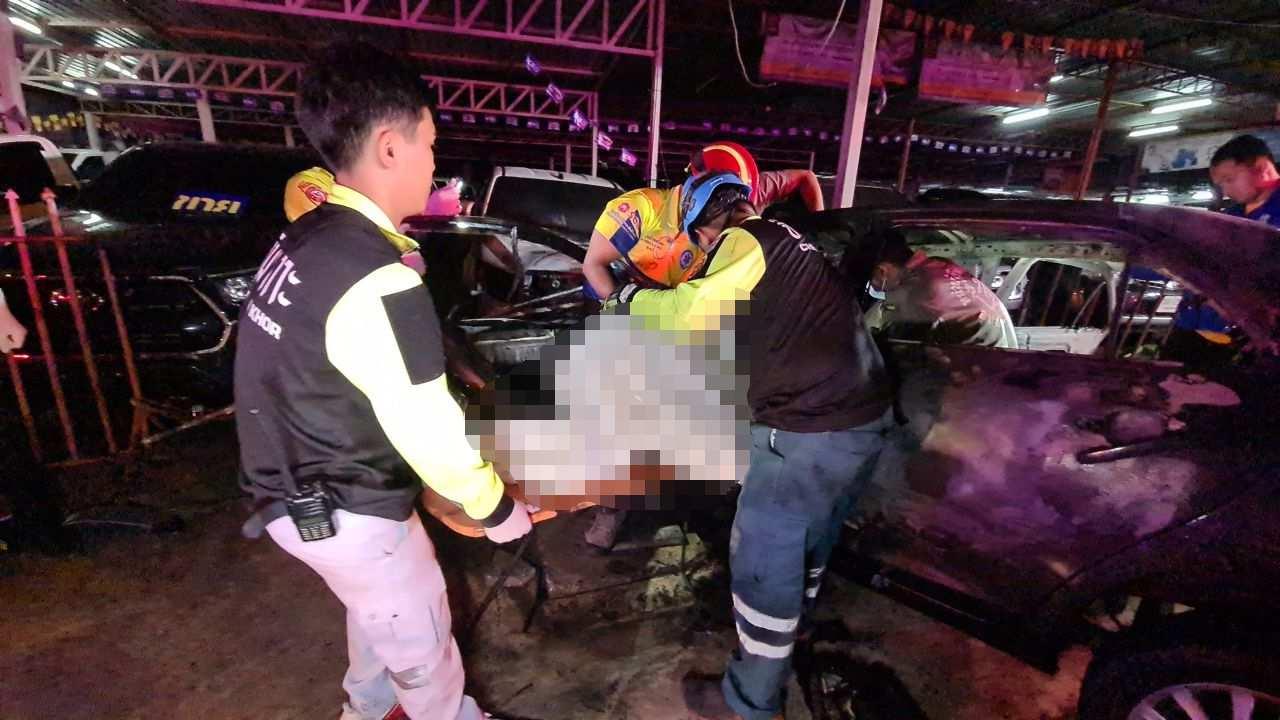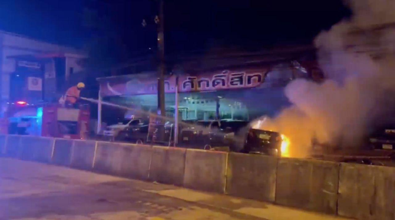 ที่เกิดเหตุพบรถยนต์ ยี่ห้อโตโยต้า วีออส สีดำ กอ 829 อุบลราชธานี ชนแบริเออร์คอนกรีตของอุโมงค์ทางลอดข้ามแยกวนารมย์ที่กำลังก่อสร้าง ก่อนจะเสียหลักพุ่งชนรถยนต์มือ 2 ที่จอดภายในเต็นท์รถของ หจก.ศักดิ์สิทธิ์การยนต์ จนเกิดเพลิงลุกไหม้ และลุกลามไปรถยนต์กระบะภายในเต็นท์ได้รับความเสียหาย 3 คัน และได้รับความเสียหายจากแผงกั้นเหล็กล้มทับรถกระบะ 3 คัน เจ้าหน้าที่ดับเพลิงใช้เวลาประมาณ 10 นาที สามารถควบคุมเพลิงไว้ได้