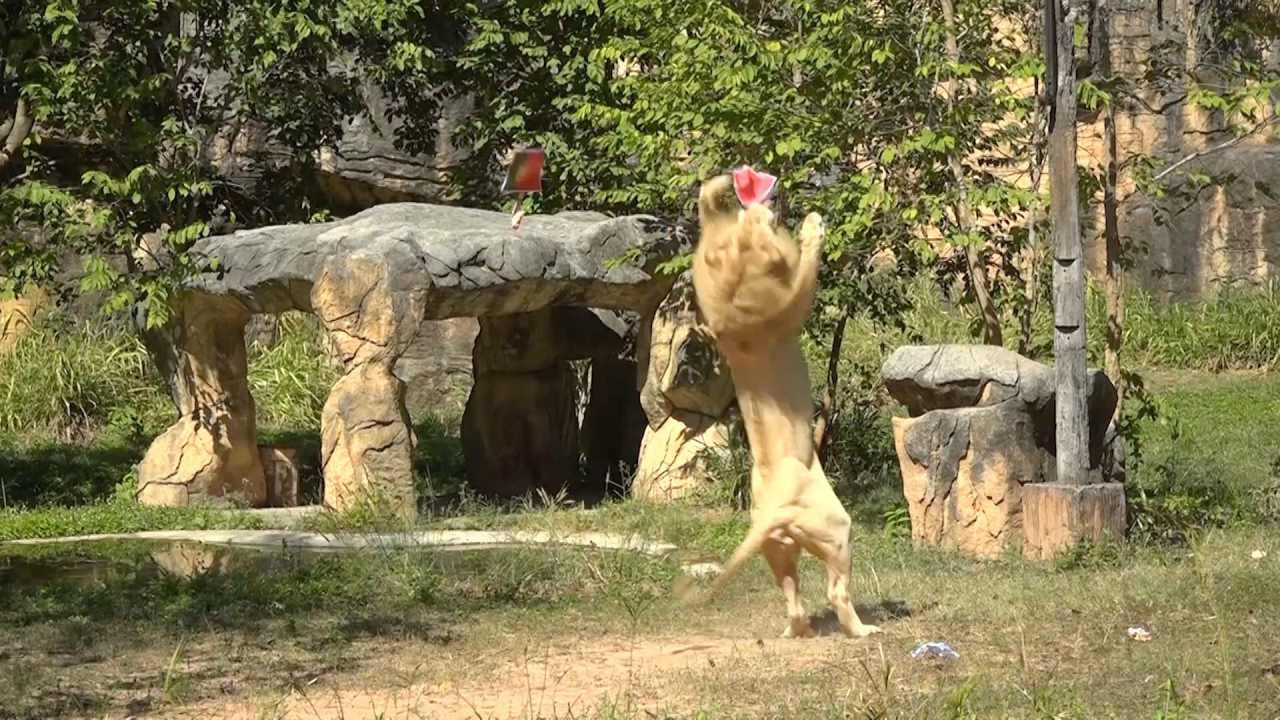เวลา 14.00 น. วันที่ 8 ธ.ค. 65 ที่ส่วนจัดแสดงสิงโตขาว ภายในสวนสัตว์ขอนแก่น ต.คำม่วง อ.เขาสวนกวาง จ.ขอนแก่น ได้จัดการร่วมสนุกทายผลฟุตบอลโลกรอบ 8 ทีมสุดท้าย ซึ่งจะแข่งขันในวันที่ 9 ธันวาคมนี้ โดยคู่แรก ระหว่างทีมชาติ โครเอเชีย กับทีมชาติบราซิล เวลา 22.00 น. ทีมชาติ เนเธอร์แลนด์ กับทีมชาติอาร์เจนตินา เวลา 02.00 น. และในวันที่ 10 ธันวาคม ระหว่างทีมชาติโมร็อกโก กับทีมชาติโปรตุเกส เวลา 22.00 น. และทีมชาติอังกฤษ กับทีมชาติฝรั่งเศส เวลา 02.00 น. โดยการนำธงชาติของแต่ละประเทศที่แข่งขันกัน ติดกับลวดสลิง พร้อมอาหารสิงโตขาวคือน่องไก่สด จัดระยะห่างระหว่าง 2 ชาติประมาณ 1 เมตร จากนั้นทำการชักรอกเข้าไปในส่วนจัดแสดง ให้เจ้าบอย สิงโตขาวอายุ 9 ปี กระโดดขึ้นตะปบอาหารที่อยู่ใต้ธงชาตินั้น โดยทำการทดสอบ 2 ใน 3 ครั้ง