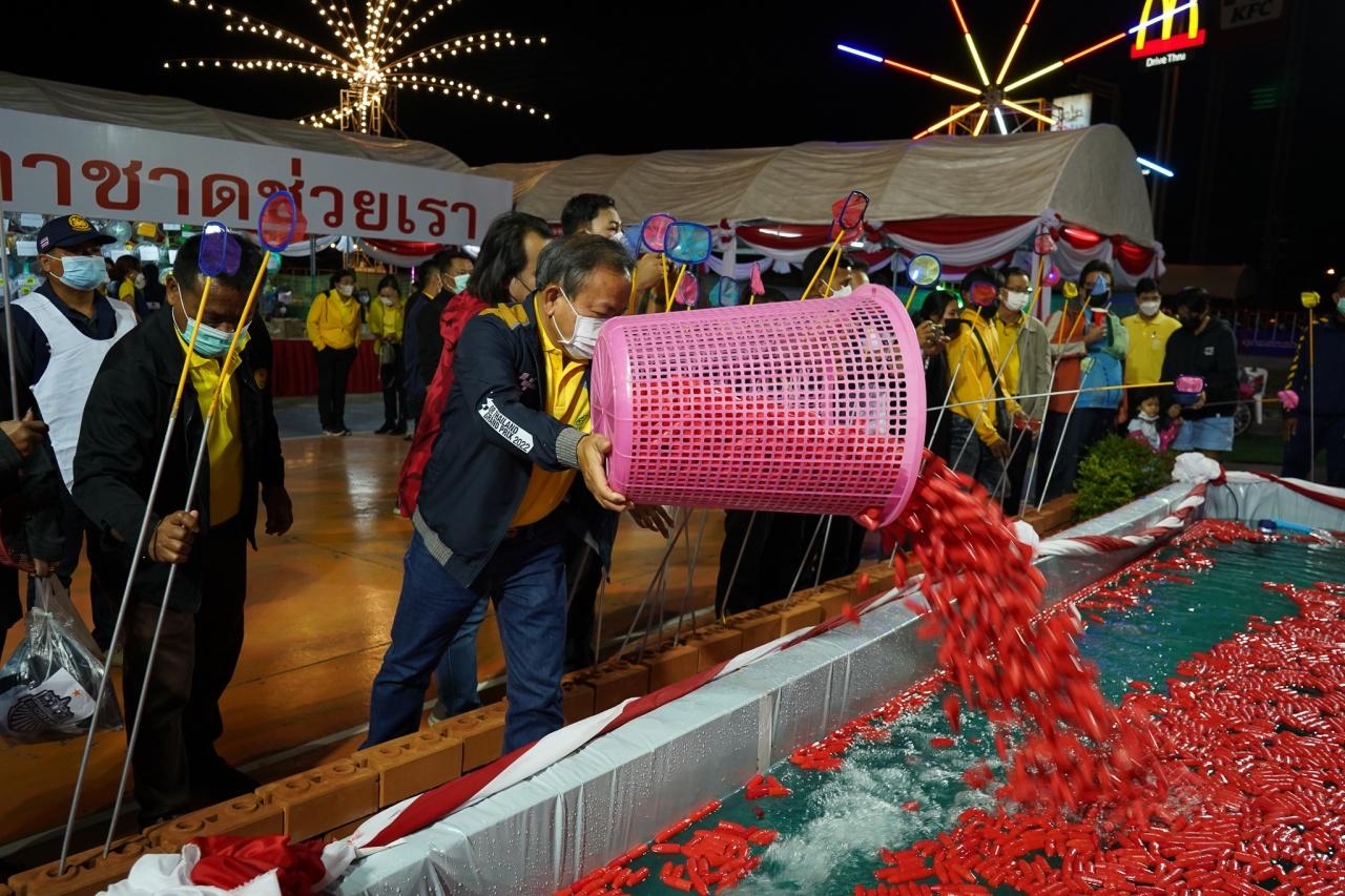 นอกจากนี้ ยังได้ร่วมทำบุญกับเหล่ากาชาดจังหวัดบุรีรัมย์ ในการออกร้านมัจฉากาชาด เพื่อให้ประชาชนและนักท่องเที่ยว ได้ร่วมทำบุญลุ้นโชคกับกาชาดบุรีรัมย์ไปจนถึงวันที่ 31 ธันวาคม 2565 โดยมีรางวัลใหญ่เป็น รถยนต์กระบะยี่ห้อโตโยต้า รีโว่ 4 ประตู เพื่อเป็นการสนับสนุนและส่งเสริมกิจกรรมต่างๆ ของสภากาชาดไทย ให้สามารถมีรายได้ในการสงเคราะห์ช่วยเหลือราษฎร ที่ประสบความทุกข์ยากเดือดร้อนและผู้ด้อยโอกาส ทั้งในท้องที่ทั่วไปและในพื้นที่จังหวัดบุรีรัมย์ โดยมีประชาชนและนักท่องเที่ยว พาบุตรหลานมาเที่ยวชมไดโนเสาร์ และร่วมสนุกลุ้นของรางวัลกันอย่างเนืองแน่น