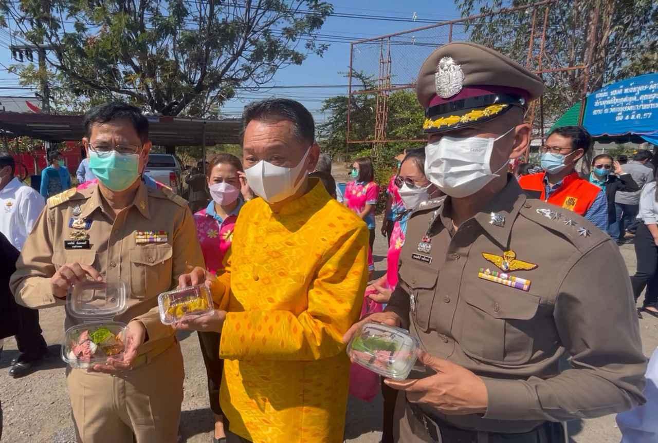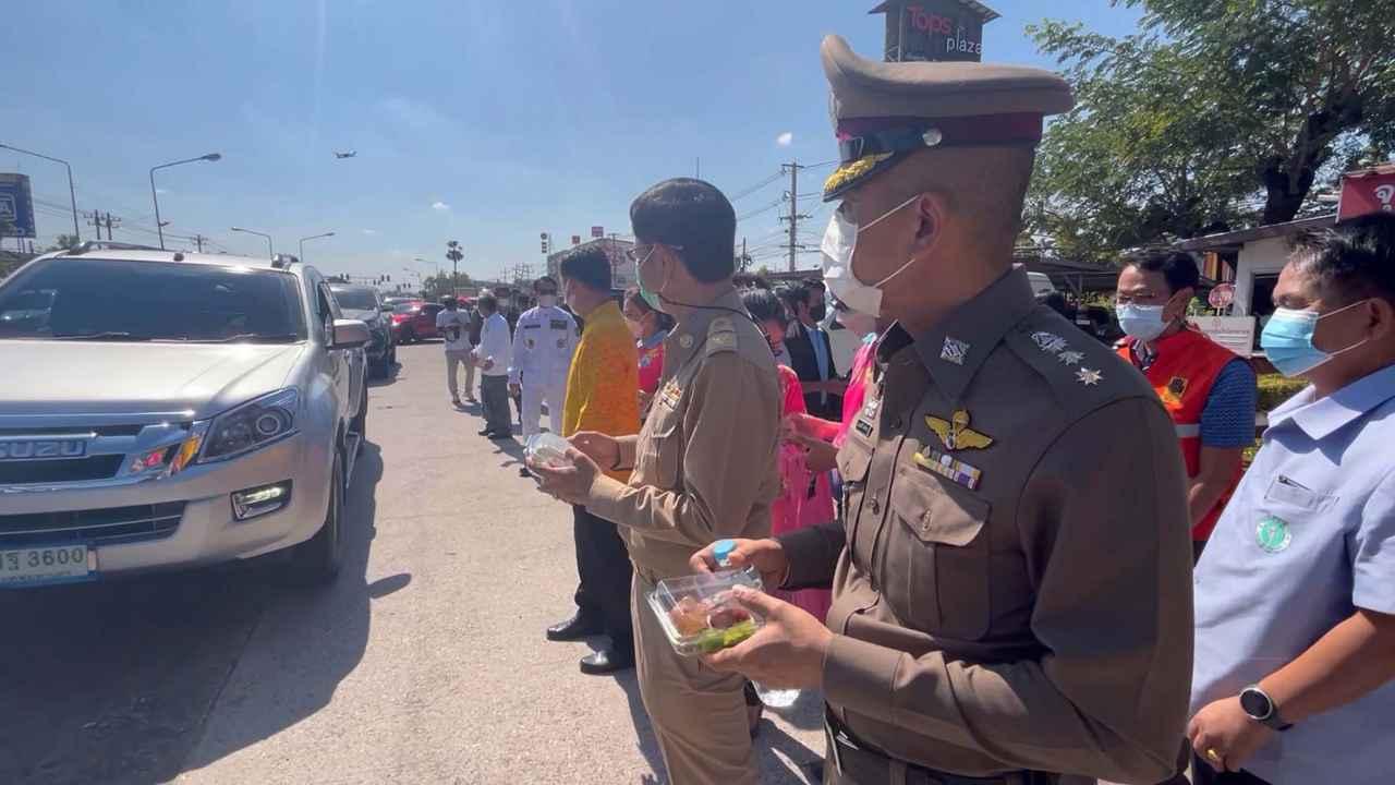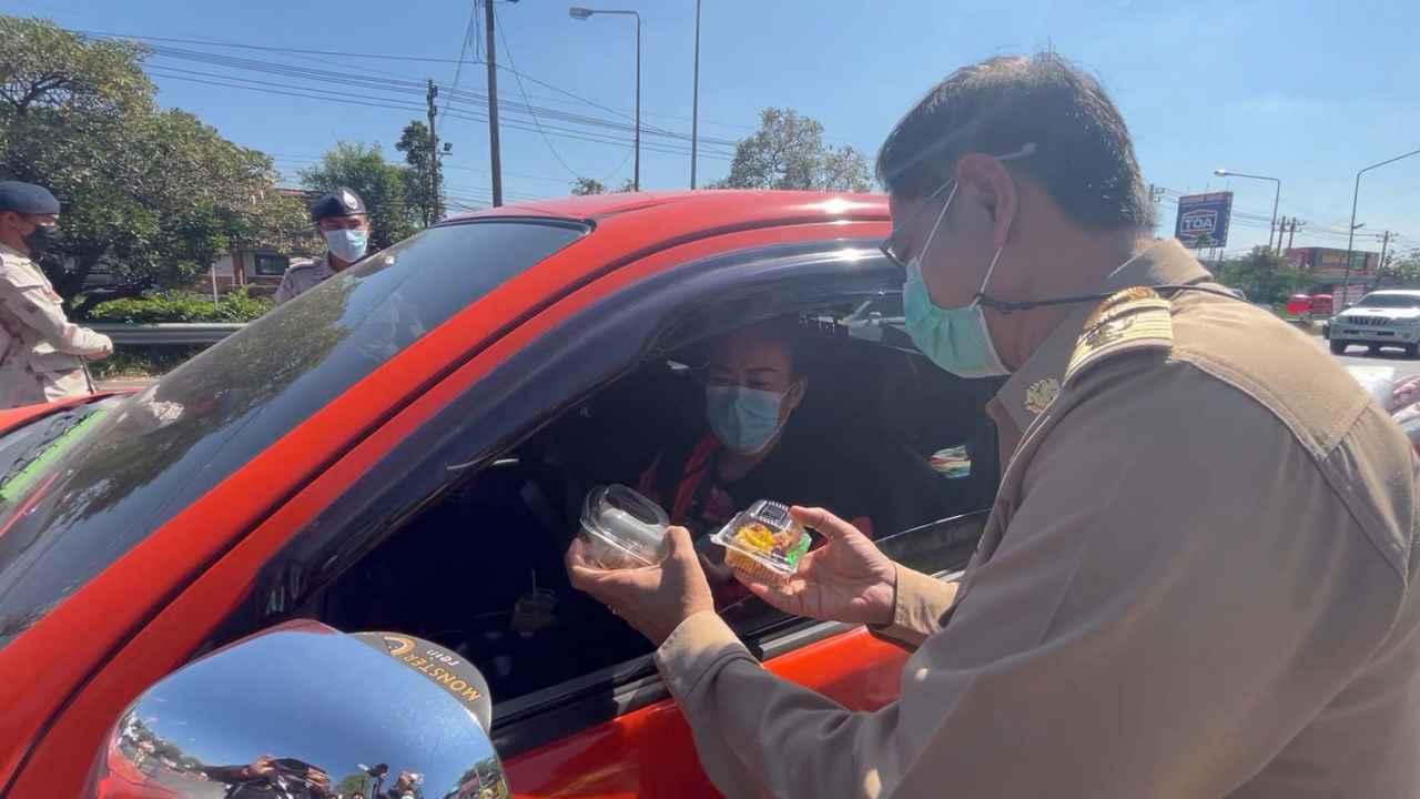 อ.พล จ.ขอนแก่น ตั้งด่านบูรณาการร่วม ช่วงหยุดยาวปีใหม่ 2566 แจกซูชิหม่ำ-เบอร์เกอร์หม่ำ-ขนมจีบหม่ำ ให้คนที่เดินทางกลับบ้านได้อิ่มท้องคลายความเหนื่อยล้าจากการขับขี่ เมื่อผ่านจุดตรวจบนถนนมิตรภาพ