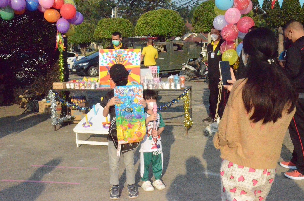 นอกจากนี้ มีการมอบของขวัญ ขนม และของรางวัลมากมาย อาทิ รถจักรยาน, ตุ๊กตา, ขนม, ผ้าห่ม, ของเด็กเล่น ไอศกรีม ข้าวไข่เจียว ไก่ทอดกรอบ เป็นที่คึกคักมาก ถือเป็นวันปีใหม่ของเด็กๆ ครอบครัวกำลังพล และครอบครัวพี่น้องประชาชน สร้างความอบอุ่นให้กับพ่อแม่ผู้ปกครอง หลายคนอุ้มลูกจูงหลาน ถือกระเป๋าใส่ขวดที่มีนมสำหรับให้ลูกดูด บางรายนำเด็กทารกแบเบาะฝาแฝดหญิงวัยน่ารักน่าเอ็นดูน่าทะนุถนอมร่วมกิจกรรม พร้อมป้อนนม