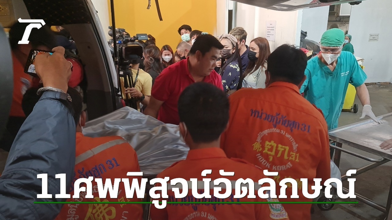 ความคืบหน้าด้านการตรวจอัตลักษณ์บุคคล เมื่อเวลา 12.30 น. วันที่ 23 ม.ค. เจ้าหน้าที่อาสาสมัครมูลนิธิพุทธธรรม 31 (ฮุก 31) นครราชสีมา นำรถตู้ 5 คัน นำร่างของผู้เสียชีวิตทั้ง 11 ศพ เดินทางจากจ.นครราชสีมา มาถึงยังสถาบันนิติเวช โรงพยาบาลตำรวจ เพื่อนำร่างทั้ง 11 ศพ ตรวจพิสูจน์อัตลักษณ์บุคคลโดยมีกลุ่มญาติของผู้เสียชีวิตเดินทางมาด้วย ท่ามกลางบรรยากาศเต็มไปด้วยความโศกเศร้า