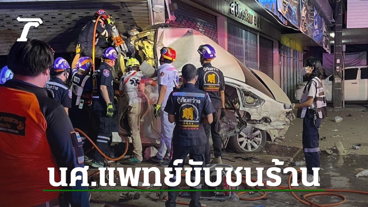 นักศึกษาแพทย์ปี 5 ม.ขอนแก่น อายุ 25 ปี ขับรถเก๋งพุ่งชนเสาป้ายทางลอด แล้วไปชนรถกระบะ 2 คัน ก่อนพุ่งเข้าร้านขายน้ำมันหล่อลื่นริมถนนมิตรภาพถูกอัดก๊อบปี้ตายคาเบาะ เหตุเกิดหลังเที่ยงคืน คาดขับเร็วรถเสียหลัก หรืออาจหลับใน