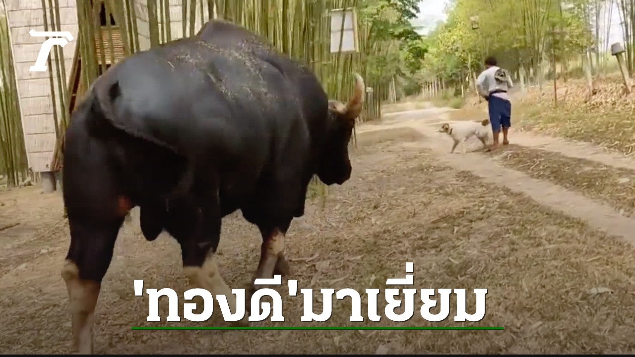 วันที่ 11 มีนาคม 2566 "เจ้าทองดี" กระทิงป่าสุดเชื่อง ขวัญใจนักท่องเที่ยวและชาวบ้านใน อ.วังน้ำเขียว จ.นครราชสีมา ได้แวะเวียนมาหลบร้อนอีกแล้วที่ สวนลุงโชค บ้านคลองทุเรียน ต.วังน้ำเขียว อ.วังน้ำเขียว จ.นครราชสีมา ซึ่ง "เจ้าทองดี" เป็นกระทิงขาประจำของสวนลุงโชค มักออกจากป่ามาหากินในช่วงหน้าแล้งเกือบทุกปี มาเดินในสวนอย่างสบายใจโดยไม่มีท่าทีดุร้าย แต่ละครั้งที่มาจะกินหญ้าหรือใบไผ่ บางครั้งก็ลงไปแช่น้ำ กินน้ำที่บ่อภายในสวน เพื่อคลายร้อน ซึ่งเมื่อวันที่ 8 กุมภาพันธ์ที่ผ่านมา ก็แวะมาที่สวนแล้วรอบหนึ่ง เพราะที่สวนลุงโชค ร่มรื่นไปด้วยป่าไผ่ มีแหล่งน้ำและอาหารให้กินอย่างอุดมสมบูรณ์ ทองดี จึงมักมาเดิน มานอนปักหลักในสวนหมากและป่าไผ่อยู่เป็นประจำ นักท่องเที่ยวและประชาชนที่เข้ามาศึกษาเรียนรู้ที่โรงเรียนป่าไผ่ของสวนลุงโชค อาจจะได้เจอตัวเป็นๆ ของ "เจ้าทองดี" อย่างใกล้ชิดด้วย