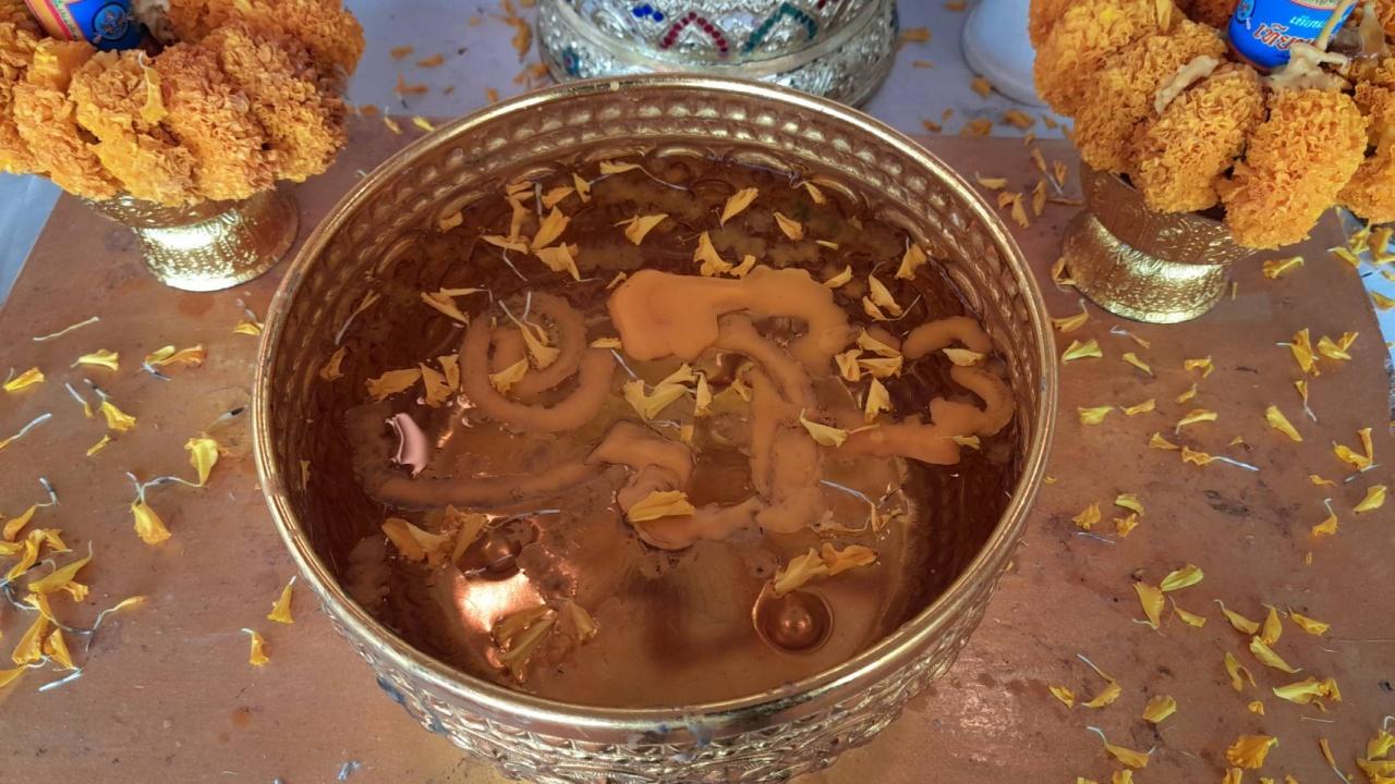 ซึ่งหลังจากที่ไหว้เสร็จแล้ว หลายคนก็ไม่พลาดที่จะเดินต่อไปที่ต้นมะเดื่อยักษ์ และบ่อน้ำศักดิ์สิทธิ์ โดยเมื่อไหว้ขอพรทั้งสามจุดแล้ว คนที่เป็นนักเสี่ยงโชคก็จะนิยมเดิมไปที่ลานบวงสรวงชั่วคราวเพื่อส่องหาตัวเลขภายในขันน้ำมนต์ งวดวันที่ 16 มี.ค. 66 ตามที่พ่อจ้ำทำพิธีให้ เห็นเป็นเลข 6-4-5-5 สุดแล้วแต่ใครจะมองเห็น