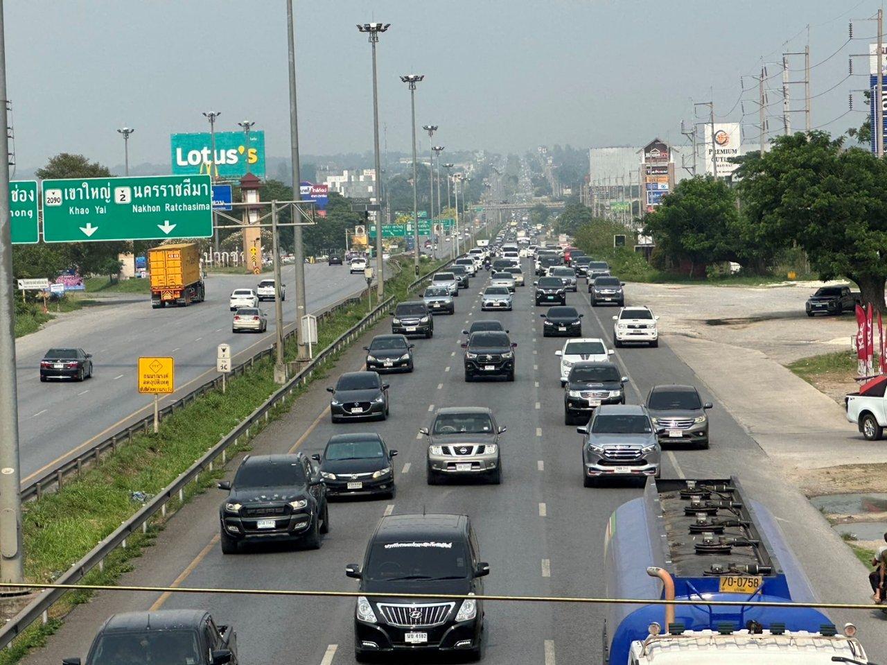 ช่วงบ่ายวันที่ 15 เมษายน 2566 ปริมาณรถที่ไปฉลองเทศกาลสงกรานต์ต่างเดินทางกลับเพิ่มขึ้นที่หน้าฟาร์มโชคชัย ถนนมิตรภาพ กม.51-52 ขาเข้ากรุงเทพมหานคร ต.หนองน้ำแดง อ.ปากช่อง จ.นครราชสีมา ทั้ง 4 ช่องจราจร รวมทั้งฟุตปาท ทำให้รถชะลอตัว เคลื่อนตัวไปได้ช้าๆ เจ้าหน้าที่ตำรวจทางหลวงนครราชสีมาต้องเปิดช่องทางพิเศษเพื่ออำนวยความสะดวกให้เดินทางเข้ากรุงเทพมหานครเพื่อเตรียมทำงานกันแล้ว เกรงหากกลับช้ารถจะติดขัด แต่วันนี้ตั้งแต่ช่วงสายปริมาณรถบนถนนมิตรภาพ ช่วงอำเภอปากช่อง จ.นครราชสีมา ปริมาณรถเพิ่มมากขึ้น บางจุดรถแน่นเคลื่อนตัวไปได้เรื่อยๆ บางจุดใช้ความเร็วได้ 60-80 กม./ชม.