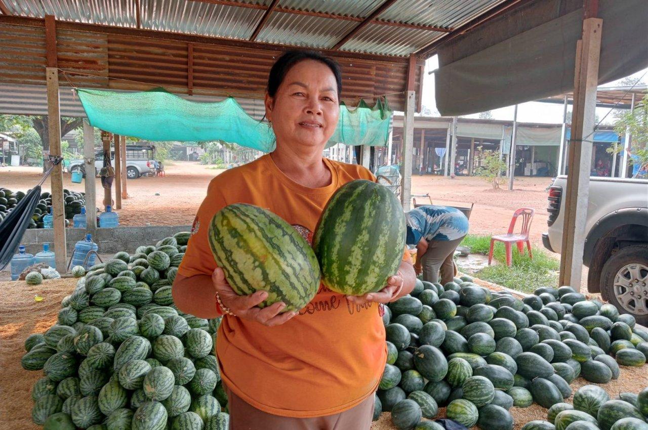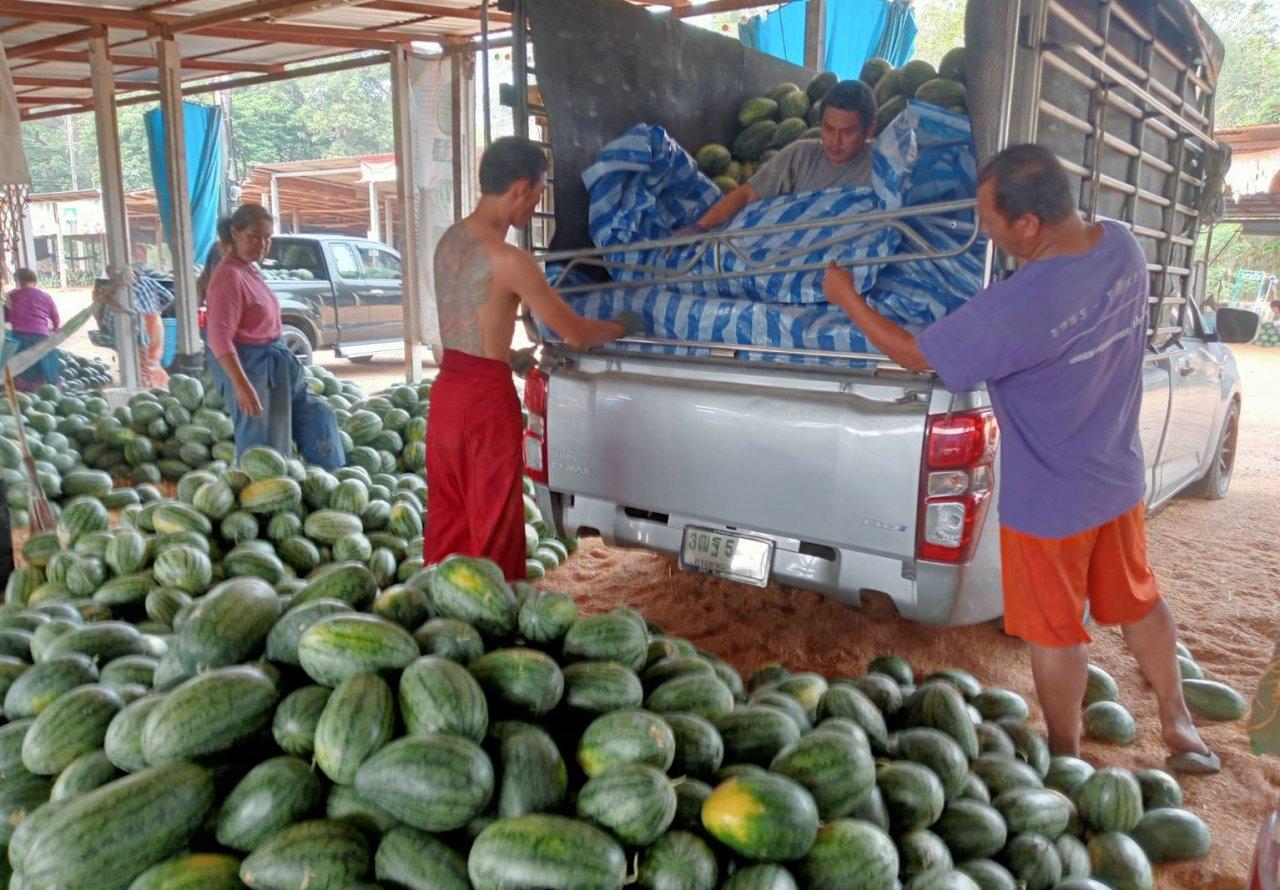 การซื้อขายแตงโมที่ตลาดกลางสินค้าการเกษตรโคกดอนหัน จ.กาฬสินธุ์ ช่วงสงกรานต์ขายดีมาก แม้ยอดขายจะลดจากปีก่อน คาดมีมูลค่าไม่น้อยกว่า 5 ล้าน ฝากรัฐบาลใหม่แก้ปัญหาปุ๋ยและสารเคมีแพงลดการขาดทุน