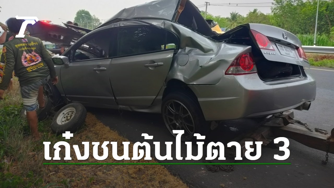 รถเก๋งจากนนทบุรีมาร่วมงานแต่งงานที่ อ.เดชอุดม แต่รถเสียหลักแฉลบลงข้างทางชนต้นไม้ ทำให้มีผู้เสียชีวิตรวม 3 ศพ บาดเจ็บ 1 ริมถนนโชคชัย-เดชอุดม ช่วง กม.ที่ 333-334 ตร.เบญจลักษ์ เร่งสอบหาสาเหตุ