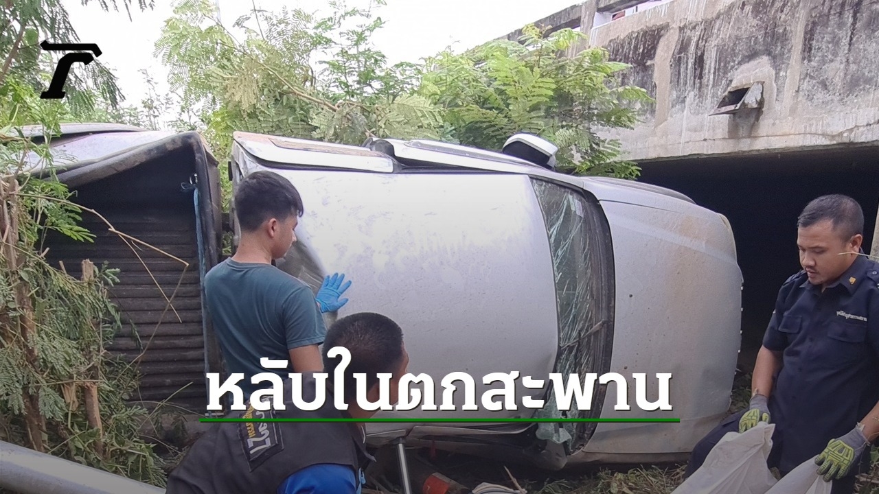 หนุ่มใหญ่วัย 48 ขับกระบะหลับในพุ่งชนราวกั้นตกสะพานเจ้าตัวกระเด็นออกจากที่นั่งถูกรถทับเสียชีวิตคาที่ส่วนผู้โดยสารบาดเจ็บ