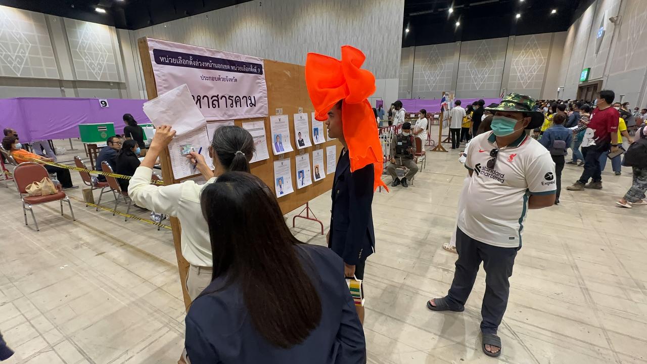 เมื่อเวลา 13.00 น. วันที่ 7 พ.ค. 2566 ที่ศูนย์ประชุมและแสดงสินค้านานาชาติ ไคซ์ (KICE) ถ.มิตรภาพ ต.ในเมือง อ.เมือง จ.ขอนแก่น บรรยากาศการเลือกตั้งล่วงหน้าที่หน่วยตั้งกลางเขต 1 จ.ขอนแก่น ซึ่งเป็นเขตเลือกตั้งที่มีผู้ลงทะเบียนใช้สิทธิล่วงหน้ามากที่สุด ประชาชนหลายพันคนต่อคิวเพื่อยื่นเอกสารให้เจ้าหน้าที่ที่จัดเตรียมไว้ทั้งหมด 20 ช่อง ท่ามกลางสภาพอากาศร้อนระอุทะลุ 40 องศาเซลเซียส แต่ประชาชนก็ยังคงทยอยเดินทางมาใช้สิทธิอย่างคึกคัก แสดงให้เห็นว่าประชาชนสนใจมาใช้สิทธิเลือกตั้งกันอย่างมาก เพื่อเปลี่ยนแปลงการบริหารประเทศ ซึ่งต่างก็เดินทางมาเข้ารอตั้งแต่เช้าก่อนเริ่มเปิดหีบเลือกตั้ง ทำให้บริเวณพื้นที่ศูนย์ประชุมและแสดงสินค้านานาชาติขอนแก่นแคบไปถนัดตา ซึ่งศูนย์ประชุมแห่งนี้เป็นจุดลงคะแนนเสียงที่ใหญ่ที่สุดของ จ.ขอนแก่น มีหน่วยเลือกตั้งนอกเขต 49 หน่วย และในเขตเลือกตั้งอีก 1 หน่วย มีจำนวนผู้มีสิทธิเลือกตั้งที่ได้ทำการลงทะเบียนขอใช้สิทธิเลือกตั้งล่วงหน้านอกเขตเลือกตั้งไว้ 24,596 คน และในเขต 106 คน โดยบรรยากาศการลงคะแนนเสียงก็เป็นไปด้วยความเรียบร้อย โดยมีกรรมการการเลือกตั้งประจำหน่วยแต่ละหน่วย เจ้าหน้าที่ตำรวจ นักศึกษาวิชาทหาร และเจ้าหน้าที่รักษาความปลอดภัย คอยดูแลรักษาความสงบเรียบร้อย อำนวยความสะดวก ในการค้นหาลำดับเลขที่และรายชื่อให้แก่ประชาชนผู้มาใช้สิทธิออกเสียงเลือกตั้ง