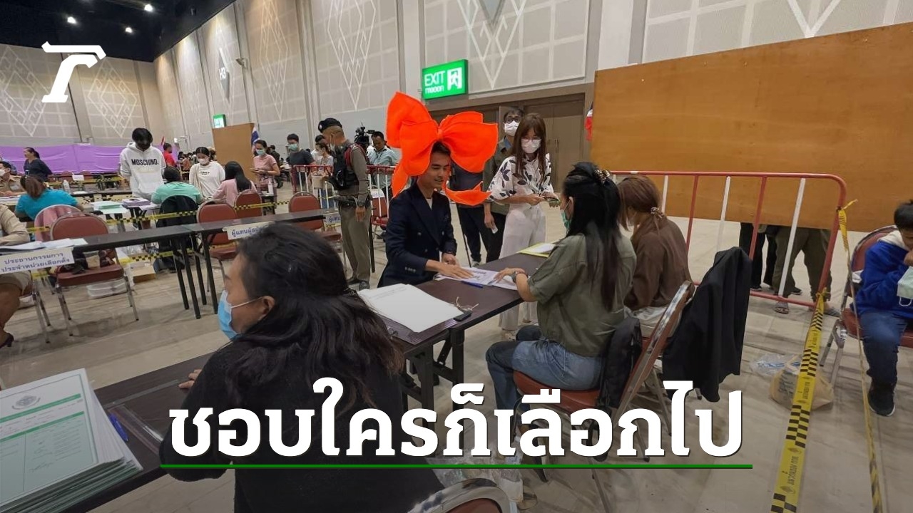 เลือกตั้งขอนแก่นฮือฮา ชาว LGBT ผูกโบยักษ์สีส้มเดินทางมาเลือกตั้ง สร้างสีสัน เจ้าตัวชี้ไม่มีนัยทางการเมือง ชอบใครก็เลือกคนนั้น ขณะที่บรรยากาศเลือกตั้งล่วงหน้าคึกคัก ท่ามกลางอุณหภูมิทะลุ 40 องศาฯ