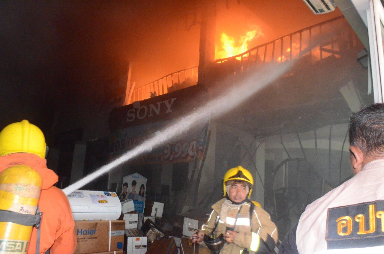ด้าน นายประเสริฐ บุญชัยสุข นายกเทศมนตรีนครนครราชสีมา กล่าวว่า เบื้องต้นเจ้าหน้าที่ตรวจสอบรายงานให้ทราบว่าน่าจะเกิดจากหม้อแปลงไฟฟ้าระเบิด ขณะนี้เจ้าหน้าที่ดับเพลิงกำลังเร่งฉีดน้ำเลี้ยงไว้ตลอดเวลา โดยสามารถควบคุมเพลิงได้แล้ว โดยต้องใช้เวลากว่า 2 ชั่วโมง ขณะนี้อยู่ระหว่างฉีดน้ำเลี้ยงเพื่อไม่ให้เกิดการปะทุขึ้นมาได้อีก พร้อมกับจะได้เข้าไปตรวจสอบความเสียหายอีกครั้งต่อไป