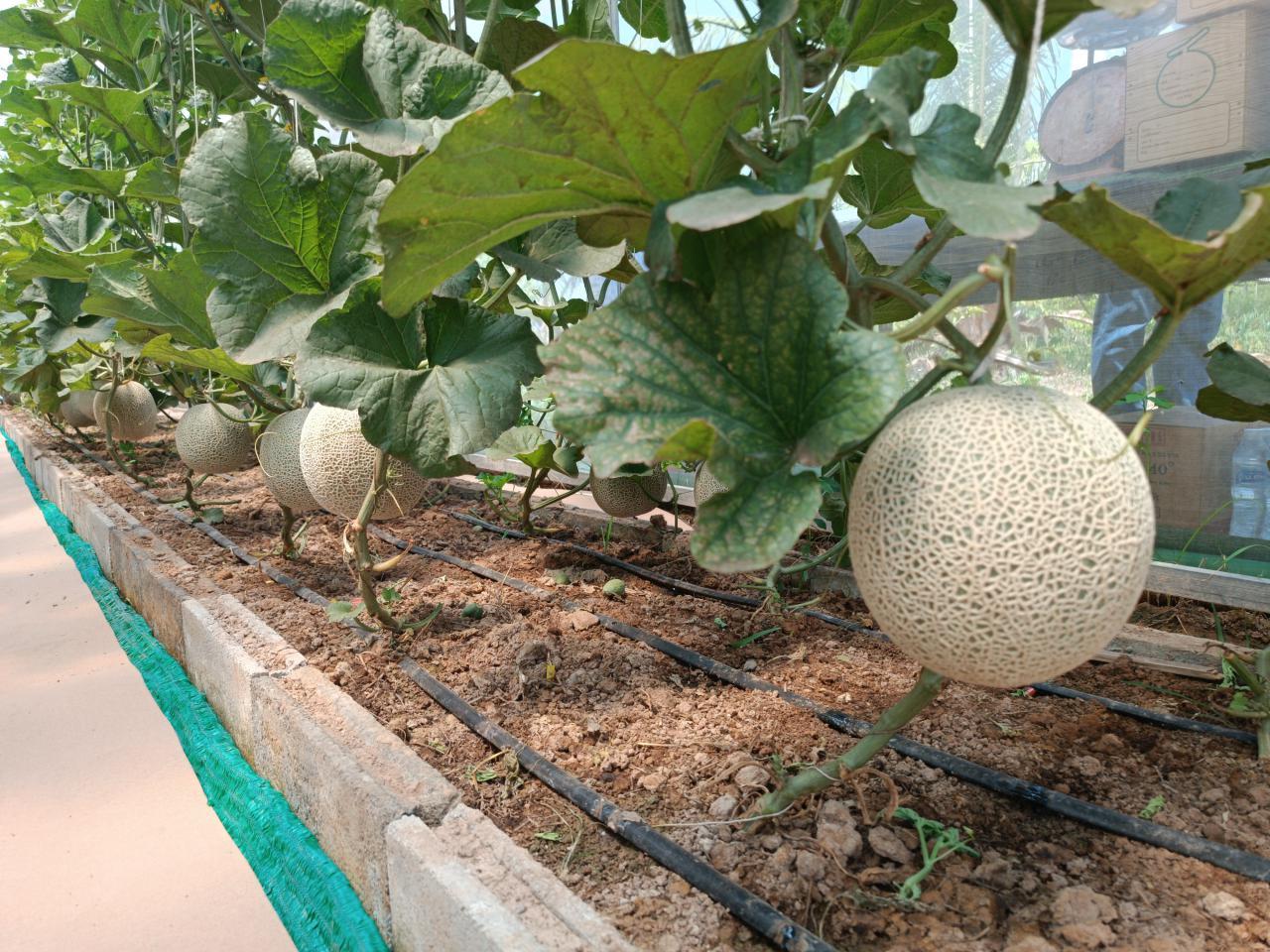 นายถนอม เจ้าของสวนเมล่อน กล่าวว่า สายพันธุ์เมล่อนที่ตนเองนำมาปลูกในตอนนี้ เป็นพันธุ์ไข่ทองคำ และพันธุ์ฮิเดโกะ ซึ่งเป็นสายพันธุ์เมล่อนที่ได้รับความนิยมของท้องตลาด ใช้เวลาเพาะเมล็ดประมาณ 10-12 วัน ก่อนจะย้ายกล้าพันธุ์มาลงแปลง ตั้งร้านให้ต้นเมล่อนได้เลื้อยเกาะ จากนั้นให้น้ำทุกวัน กระตุ้นด้วยปุ๋ยหมักหรือปุ๋ยอินทรีย์ จนเวลาผ่านไปอีกประมาณ 25 วัน เมล่อนจะออกดอกจึงทำการผสมเกสร รอเวลาอีกประมาณ 45 วันเมล่อนจะให้ผลผลิตและสามารถเก็บเกี่ยวได้แล้ว