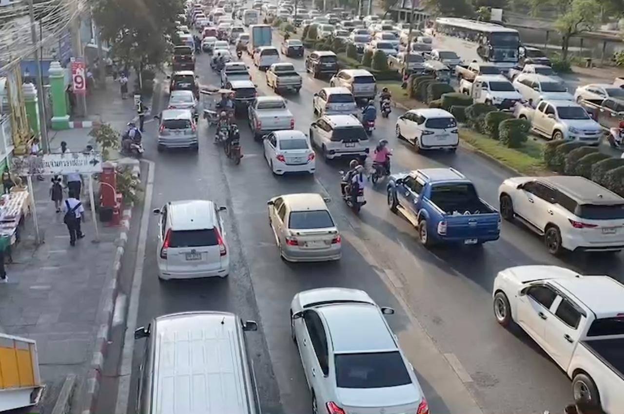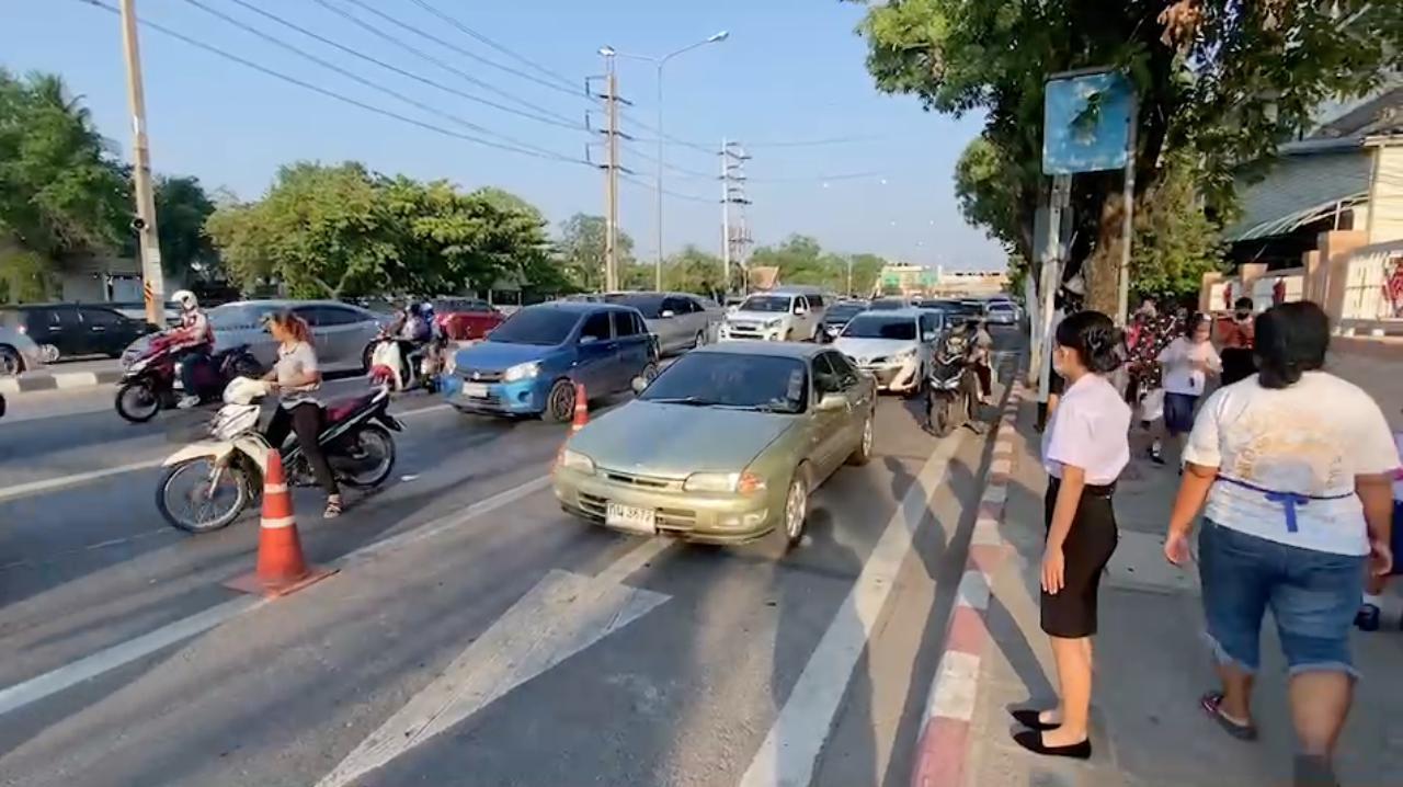 โคราชเปิดเทอมวันแรกคึกคัก ผู้ปกครองแห่ส่งลูกไปโรงเรียน ทำให้การจราจรบนถนนราชสีมา-โชคชัย รถติดหนึบยาวกว่า 1 กิโลเมตร เพราะมีสถานศึกษาถึง 4 แห่ง จำนวนนักเรียนรวมกันกว่าหมื่นคน