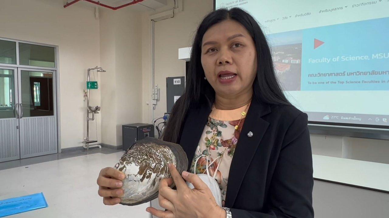 นักวิจัยคณะวิทยาศาสตร์ มมส. ค้นพบ "หอยกาบน้ำจืดขนาดใหญ่ชนิดใหม่ของโลก" จากแม่น้ำชี ที่บ้านท่าขอนยาง และบ้านท่าสองคอน จ.มหาสารคาม แต่กลับใกล้สูญพันธุ์ โดยเล็งขยายพันธุ์เพิ่มให้ชาวบ้านเลี้ยง