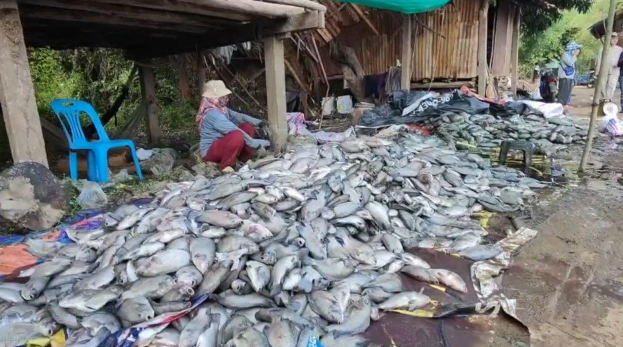 เมื่อวันที่ 22 พ.ค. 2566 ผู้สื่อข่าวรายงานว่า จากสภาพอากาศร้อนจัดของจังหวัดมหาสารคาม ประกอบกับภัยแล้งเริ่มขยายวงกว้าง แล้วส่งผลให้ผู้เลี้ยงปลากระชังที่ลำน้ำชีบ้านกอกหนองบัว ต.หนองบัว อ.โกสุมพิสัย จ.มหาสารคาม เจอปัญหาปลาน็อกน้ำตายเกลื่อน 10 ตัน เนื่องจากขาดออกซิเจน ขึ้นจากแพกระชังขึ้นบนฝั่งโดยใช้รอกนำปลามากองไว้ เร่งนำมาทำปลาร้าและจำหน่ายในกิโลกรัมละ 10 บาท