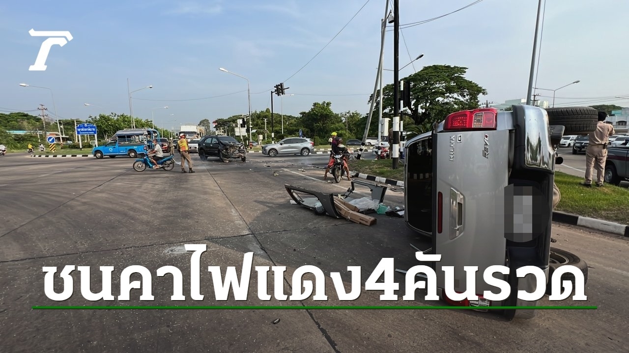 รถเอสยูวีขับมุ่งหน้าเข้าเมืองร้อยเอ็ดเพื่อไปทำงาน ข้ามแยกไฟแดงแยกบายพาสจตุรพักตรพิมานที่ขัดข้อง ทำให้เฉี่ยวชนรถกระบะที่สวนมาพลิกคว่ำ พุ่งไถลกวาด จยย.จอดรอข้ามแยกอีก 2 คัน เจ็บ 3 ราย