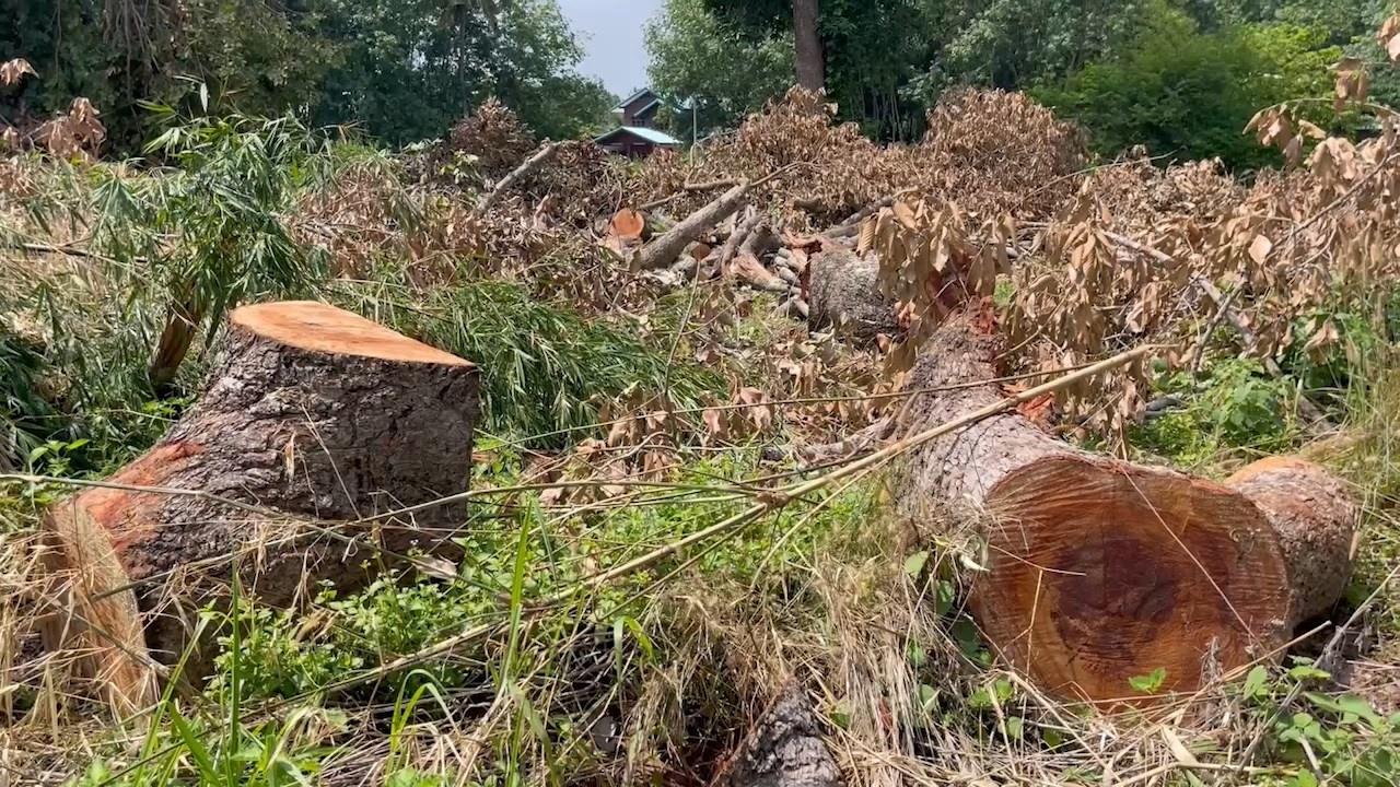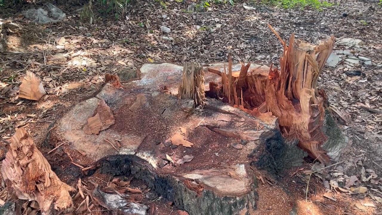 ผู้สื่อข่าวจึงลงพื้นที่ที่วัดบ้านอาพืด พบว่าบริเวณด้านหลังโบสถ์มีต้นไม้ถูกตัดออกไปสิบกว่าต้น เหลือแต่ตอไม้กับท่อนไม้กิ่งไม้บางส่วนที่ยังไม่ได้ถูกขนออกไปวางกองอยู่เป็นจุดๆ จากนั้นได้ไปตรวจสอบที่ศาลปู่ตาท้ายหมู่บ้าน พบต้นยางขนาดประมาณ 3 คนโอบ ความสูงประมาณ 30-40 เมตร ถูกตัดโค่นล้ม ส่วนลำต้นจากโคนต้นไปถึงกลางลำต้นถูกขนย้ายออกไปแล้ว เหลือช่วงกลางลำต้นกับปลายไม้ที่ถูกตัดเป็นท่อนรอการขนย้าย