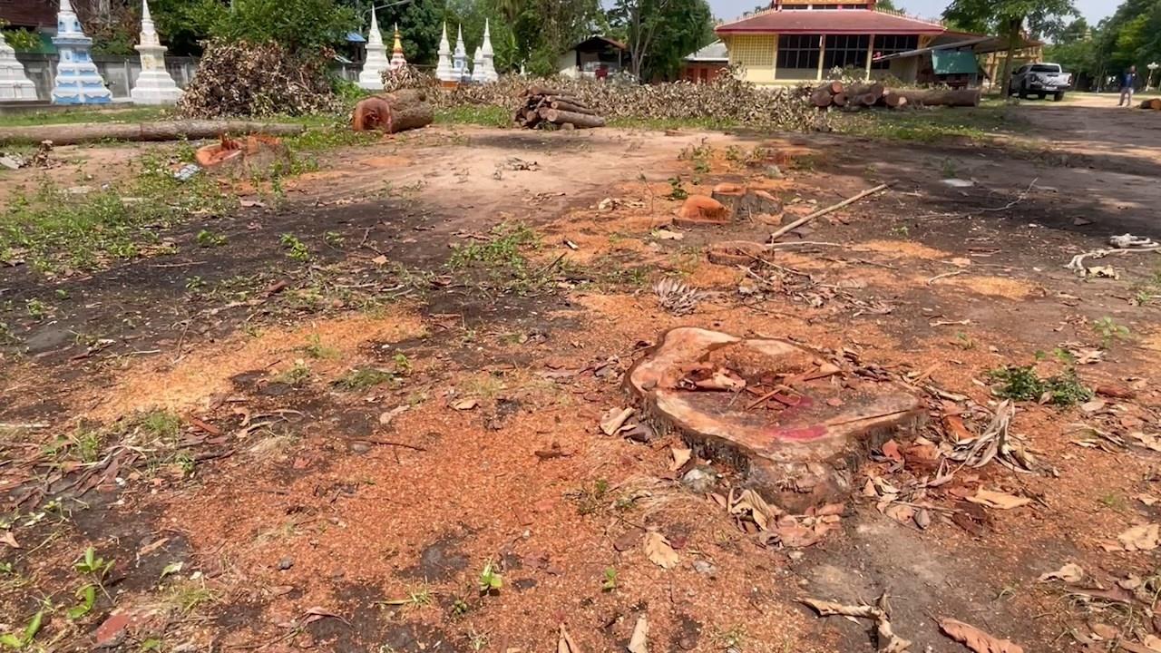 ขณะที่ชาวบ้านที่อยู่ข้างเคียงวัด บอกว่า ไม่รู้ว่าตัดกันวันไหน เพราะตนไม่ค่อยได้อยู่บ้าน ก่อนตัดก็ได้มีการประชุมกันอยู่ ส่วนสาเหตุที่ตัดเห็นว่าชาวบ้านที่อยู่ข้างวัดว่า เขากลัวต้นไม้ล้มใส่บ้านและโบสถ์ ส่วนไม้เขาเอาไปไหนตรงนี้ไม่รู้ แต่เงินที่ขายได้ก็จะเอามาเข้ากองกลางไว้ เพื่อสร้างโบสถ์ที่ยังทำไม่เสร็จ ตอนประชุมก็ตกลงกันให้ขายมันจะง่ายกว่าเพราะตัดเองไม่ได้ ส่วนต้นศาลปู่ตาทางผู้ใหญ่เก่าเขาก็อยากให้ตัดเหมือนกันเขากลัวล้มใส่บ้านเขา โดยศาลาปู่ตาเป็นที่ของหมู่บ้านเหมือนกันเป็นที่ศักดิ์สิทธิ์ที่ชาวบ้านให้ความเคารพนับถือกันทั้งหมู่บ้าน