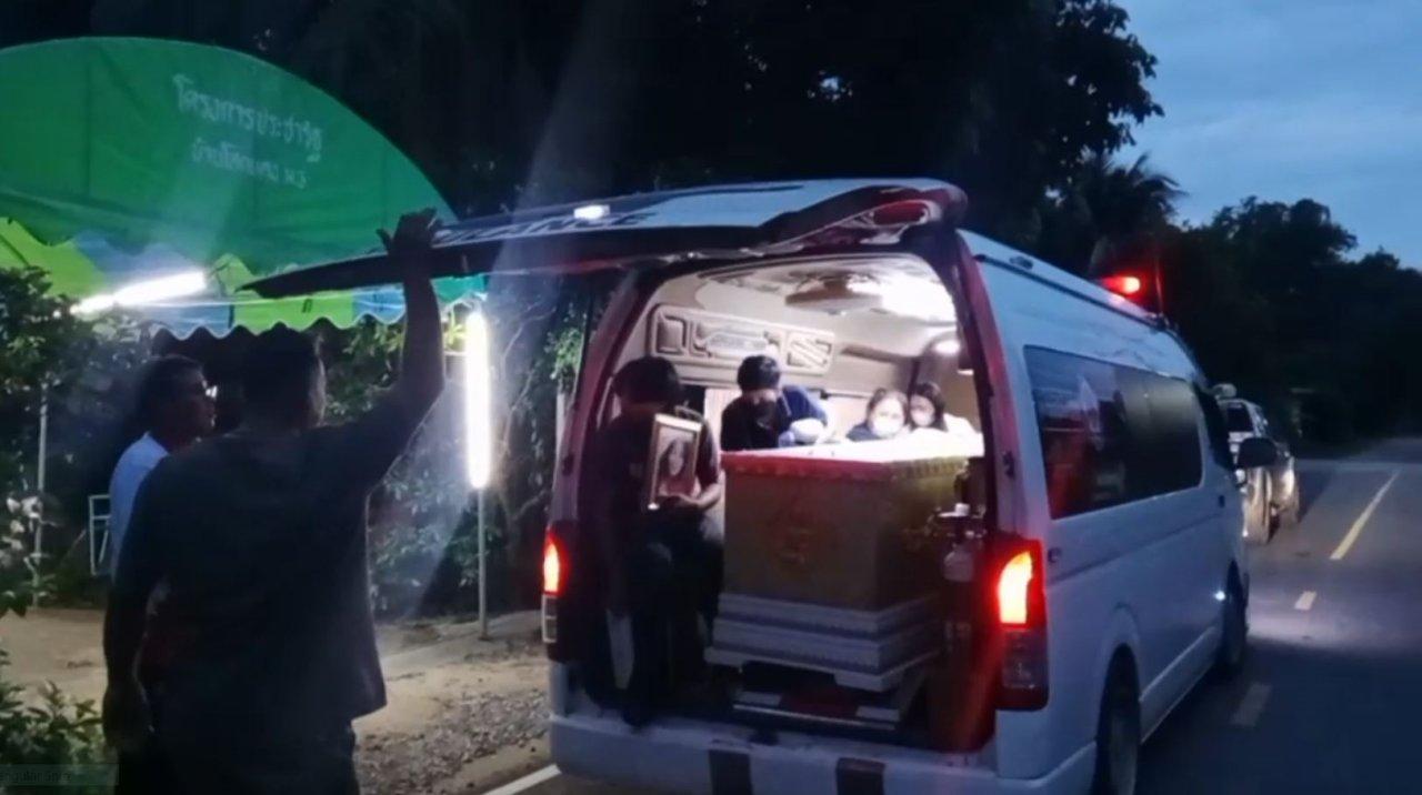 โดยได้มีรถพยาบาลนำโลงศพ ที่ใส่ร่างอันไร้วิญญาณของน้องนิว น.ส.สิรินยา เดชรักษา อายุ 25 ปี เดินทางกลับมาจาก รพ.ธรรมศาสตร์เฉลิมพระเกียรติ จ.ปทุมธานี เพื่อนำมาประกอบพิธีกรรมทางศาสนาที่บ้านเกิดของน้องนิว ท่ามกลางความเสียใจของญาติๆ ที่มารอรับศพ โดยมีคุณตา คุณยาย และแม่ของน้องนิว ที่ประคองอยู่ข้างๆ โลงศพอยู่ตลอดเวลา