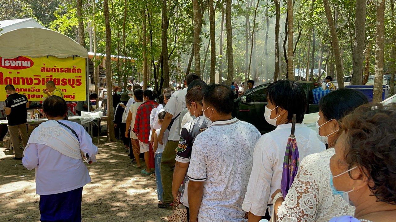 สำหรับวันนี้เป็นวันที่ 3 ของการจัดงาน ซึ่งตั้งแต่ช่วงเช้าที่ผ่านมาพบว่ามีสาธุชนจากทั่วสารทิศเข้ากราบสรีรสังขารเป็นจำนวนมาก เนื่องจากใกล้จะถึงวันพิธีพระราชเพลิงศพ ขณะเดียวกันมีการจัดโรงทานจากหน่วยงานองค์กรทั้งจากภาครัฐ เอกชน และประชาชน ที่มาแจกข้าวปลา อาหาร น้ำดื่ม ให้กับผู้คนที่มาร่วมงาน ซึ่งมีผู้ร่วมบุญสลับเข้ามาตั้งโรงทานกันจำนวนมาก ท่ามกลางประชาชนที่ทยอยมาต่อแถวรอรับเป็นจำนวนมาก ทำให้บรรยากาศภายในงานแน่นขนัดไปด้วยศรัทธาสาธุชนที่เข้ามากราบสรีระหลวงปู่แสง อย่างไม่ขาดสาย