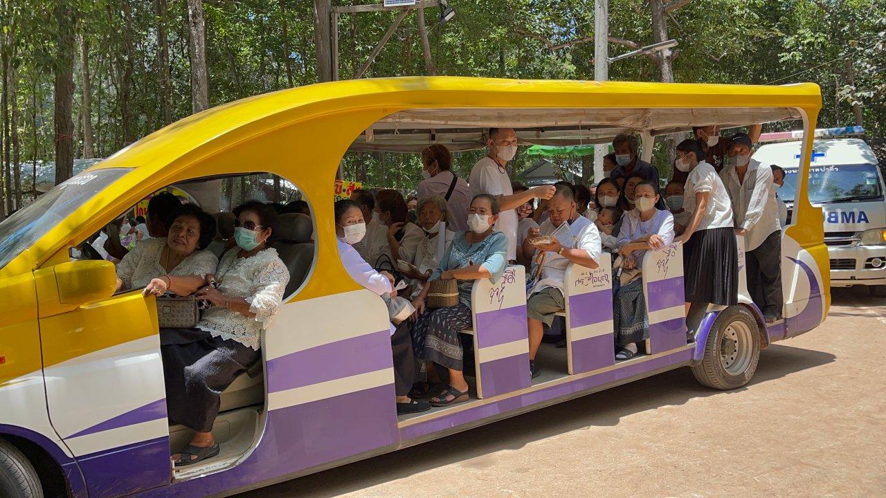 ขณะที่การเดินทางมาวัดนั้น ทางเจ้าหน้าที่ได้จัดจุดจอดรถยนต์ไว้ทั้งหมด 5 ลานจอดเป็นพื้นที่ขนาดใหญ่รอบบริเวณวัด สามารถจุรถยนต์ได้กว่า 1,500 คัน พร้อมทั้งมีรถรางรับส่งประชาชนที่มาร่วมงานตลอดทั้งวัน.