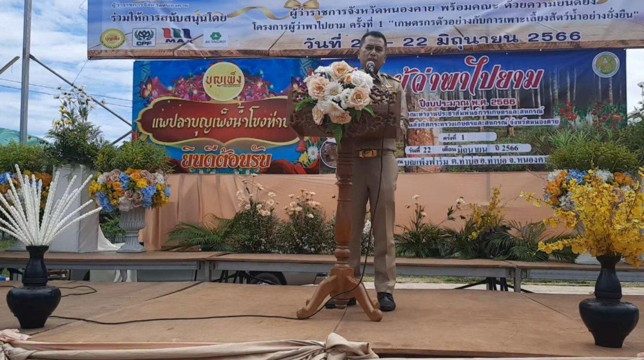 วานนี้ (26 มิ.ย.66) ผู้สื่อข่าวรายงานว่า บุญเพ็งฟาร์ม ต.ท่าบ่อ อ.ท่าบ่อ จ.หนองคาย นายราชันย์ ซุ้นหั้ว ผู้ว่าราชการจังหวัดหนองคาย เป็นประธานเปิดโครงการ “ผู้ว่าพาไปยาม” ครั้งที่ 1 ประจำปี 2566 ภายใต้กิจกรรม "เกษตรกรตัวอย่างกับการเพาะเลี้ยงสัตว์น้ำอย่างยั่งยืน ของสำนักงานงานเกษตรและสหกรณ์จังหวัดหนองคาย ร่วมกับหน่วยงานในสังกัดกระทรวงเกษตรและสหกรณ์ ในจังหวัดหนองคาย จัดขึ้น โดยนำพาผู้บริหารและคณะสื่อมวลชนไปเยี่ยมชมโครงการ/กิจกรรมเด่น เพื่อประชาสัมพันธ์ผลงานผ่านทางสื่อประชาสัมพันธ์ต่างๆ ส่งผลให้กิจกรรมด้านการเกษตรและสหกรณ์ในพื้นที่จังหวัดหนองคาย เป็นที่รู้จักอย่างกว้างขวางมากขึ้น
