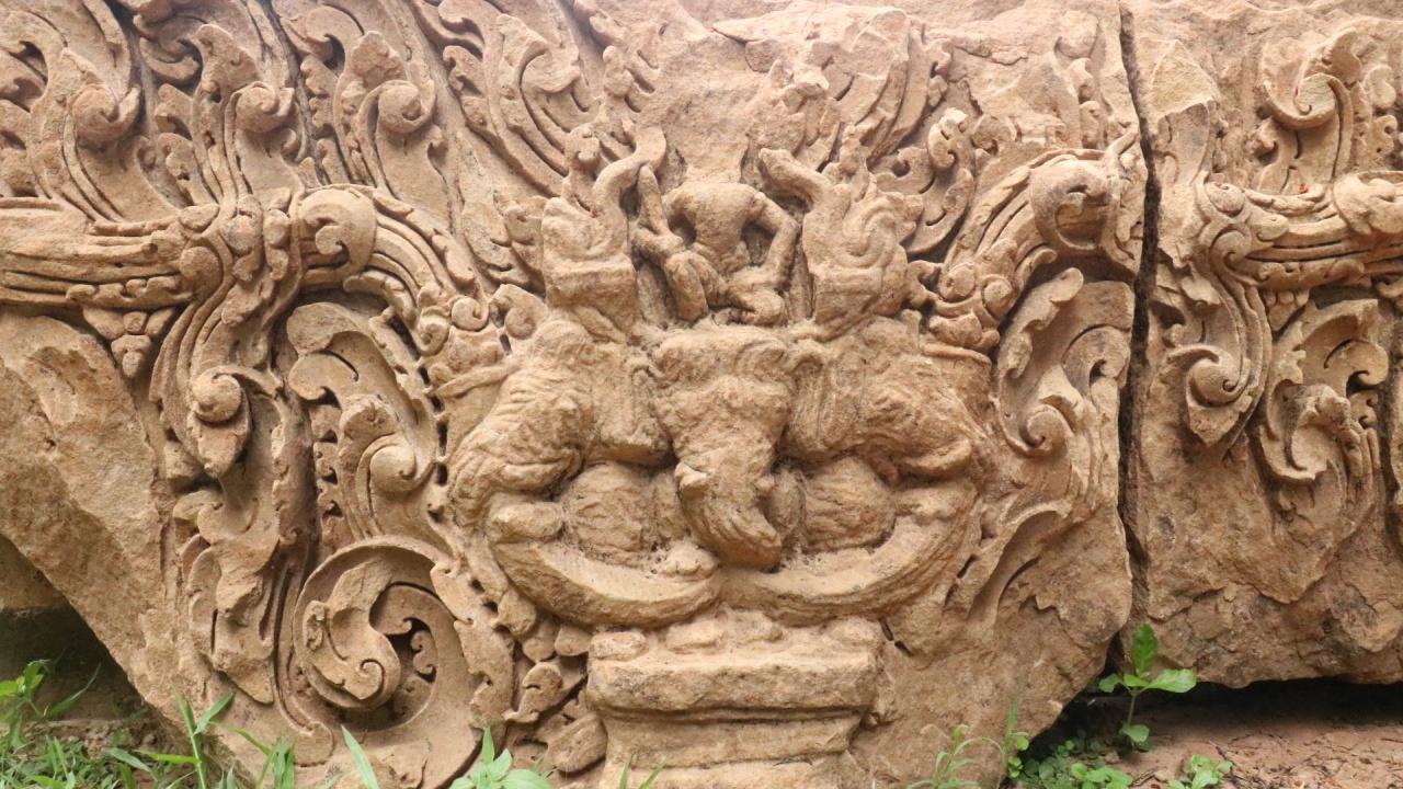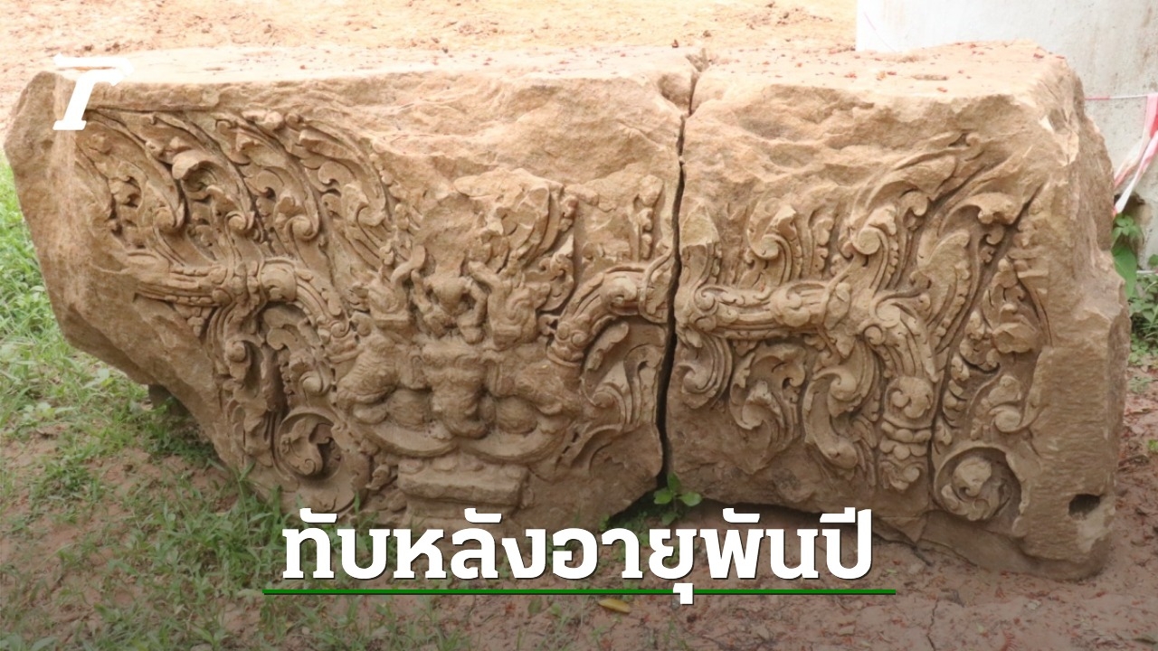 การขุดแต่งโบราณสถาน "ปราสาทบ้านบุใหญ่" ต.สูงเนิน อ.สูงเนิน จ.นครราชสีมา พบบานประตูทึบปราสาทด้านที่ 3 และทับหลังชิ้นที่ 4 "พระอินทร์ทรงช้างเอราวัณคายท่อนพวงมาลัย" ศิลปะเขมรแบบบาปวน ประมาณพุทธศตวรรษที่ 16 หรือ 1 พันปีมาแล้ว
