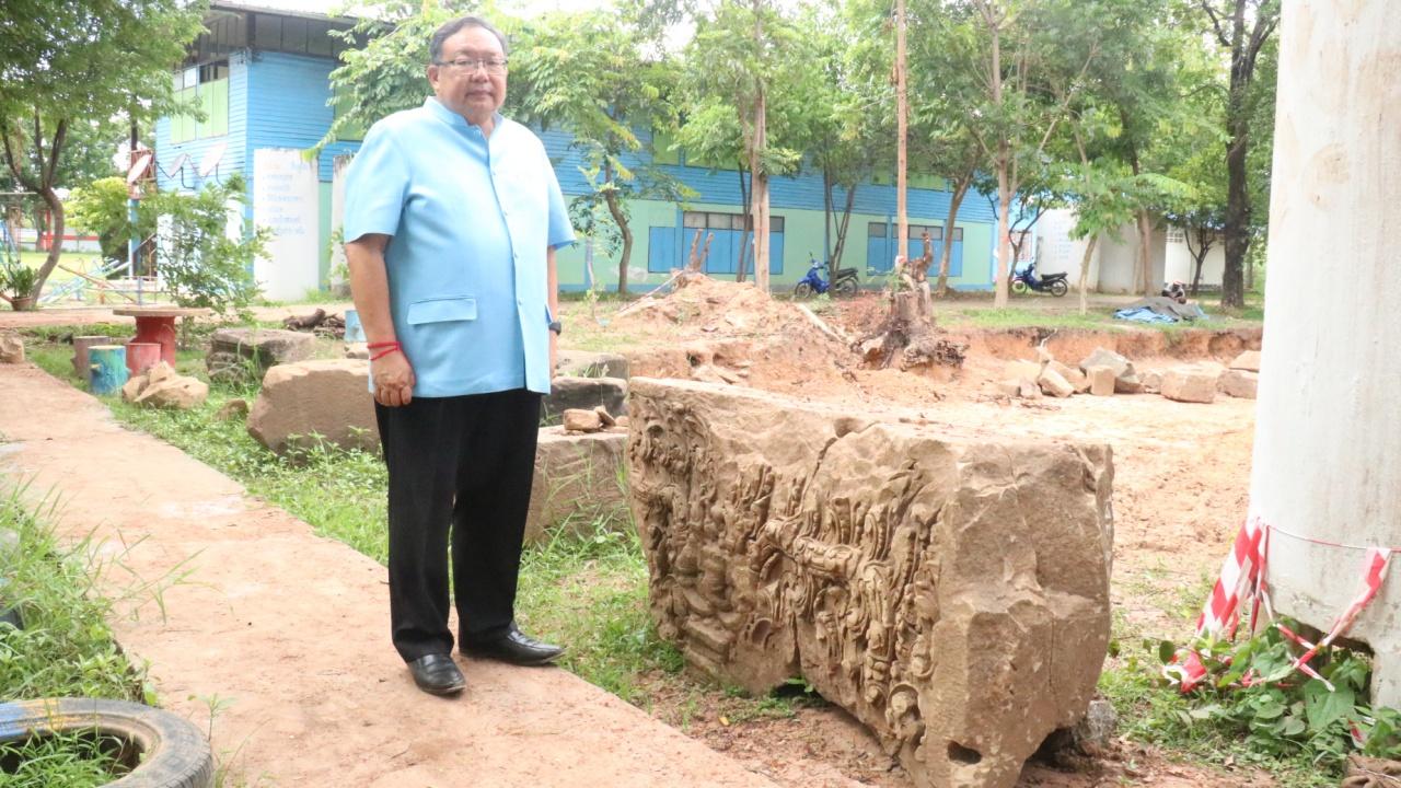 วันที่ 26 มิถุนายน นายรักชาติ กิริวัฒนศักดิ์ ประธานสภาองค์การบริหารส่วนจังหวัด (อบจ.) นครราชสีมา ลงพื้นที่ตรวจเยี่ยมความคืบหน้าการดำเนินโครงการขุดแต่งโบราณสถานปราสาทบ้านบุใหญ่ ตามสัญญาที่ 128/2566 พื้นที่หลังโรงเรียนบ้านบุใหญ่ หมู่ 7 ต.สูงเนิน อ.สูงเนิน จ.นครราชสีมา พบบานประตูทึบปราสาทด้านที่ 3 และทับหลังชิ้นที่ 4 พระอินทร์ทรงช้างเอราวัณ คายท่อนพวงมาลัย ร่องรอยการสลักมีความลึกและเด่นชัดแต่ยังไม่เสร็จสมบูรณ์ โดยขุดค้นพบบริเวณด้านทิศตะวันตกของปราสาท