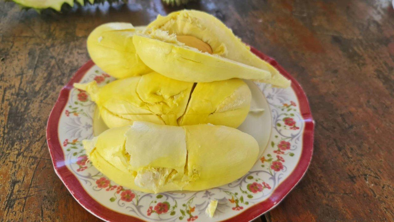 ของดีอุดรธานี "ทุเรียนนายูง" สวนลุงเส็ง@นายูง เอกลักษณ์กลิ่นไม่แรง เนื้อหวาน มัน กรอบ ได้รับ GAP ลูกค้าจองข้ามปี มีวางขายหน้าบ้านและออนไลน์ กก.ละ 170 บาท โดยปีนี้เกษตรอำเภอหนุนชาวบ้านนายูงปลูกเพิ่มรวม 294 ไร่
