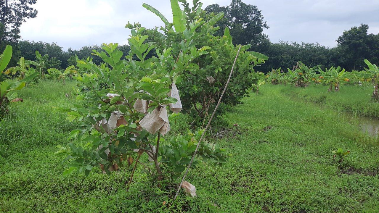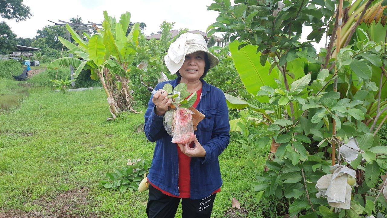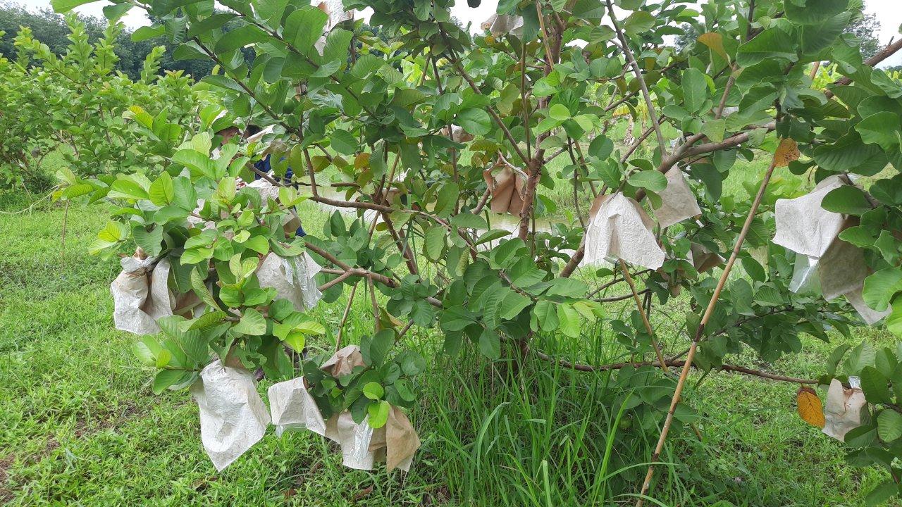 นางสาวฤดี พวงจำปา กล่าวว่า เนื่องจากพื้นที่ปลูกส้มน้ำท่วม ทำให้ส้มได้รับความเสียหายจึงต้องปลูกผลไม้ชนิดใหม่ ถ้ายังเอาส้มไว้จะต้องใช้ปุ๋ยชีวนะ แต่สวนส้มตรงนี้ได้รับการรับรองมาตรฐาน GAP จึงไม่สามารถใช้ปุ๋ยชีวนะได้ โดยทดลองปลูกฝรั่งดูว่าจะได้ผลหรือไม่ ซึ่งฝรั่งหงเป่าสือ ราคาที่ท้องตลาดอยู่ที่ 70-100 บาทต่อกิโลกรัม มีรสชาติหวาน หอม กรอบ อร่อย เนื้อในสีแดง การดูแลรักษาก็ดูแลง่าย โดยใช้กระดาษห่อเพื่อรักษาผิวของฝรั่งไม่ให้โดนแสงแดด จะทำให้ผลดูออกมาสวย