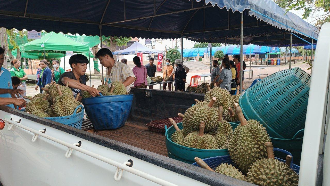 เริ่มแล้วเทศกาล ทุเรียนต้นน้ำมูล @ครบุรี ครั้งที่ 1 หน้าที่ว่าการอ.ครบุรี โดยเกษตรกรแห่ส่งทุเรียนเข้าประกวดเพียบ พร้อมขนทุเรียนหมอนทองสวยๆ จากสวนมาขาย เริ่มต้นที่ราคา กก.ละ 150 บาท