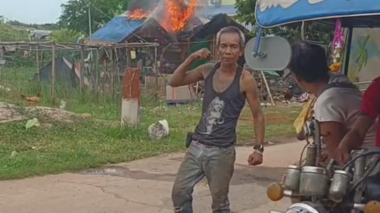 ลุงวัย 58 ปี คนจริงเมืองอุดรฯ โมโหถูกลูกเมียท้า กล้าเผาบ้านหรือเปล่า กินเหล้าเสพยาเมาได้ที่จุดไฟเผาบ้านวอด เพื่อนบ้านถ่ายคลิปเป็นหลักฐาน