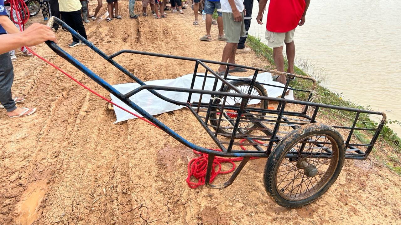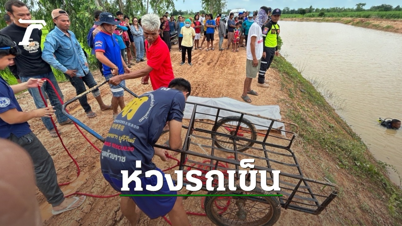 สามีภรรยา เกี่ยวหญ้าใส่รถเข็นใช้จยย.ลากรถเข็นเอาไปเลี้ยงวัวที่บ้าน สามีขับ ภรรยานั่งทับที่จับรถเข็นลาก เจอถนนขรุขระ สามีกลัวรถเข็นจะตกน้ำคว้าเอาไว้ ก่อนตกลงไปในน้ำทั้งรถทั้งคน ไม่ยอมปล่อยมือจมหายต่อหน้าเมียดับสลด