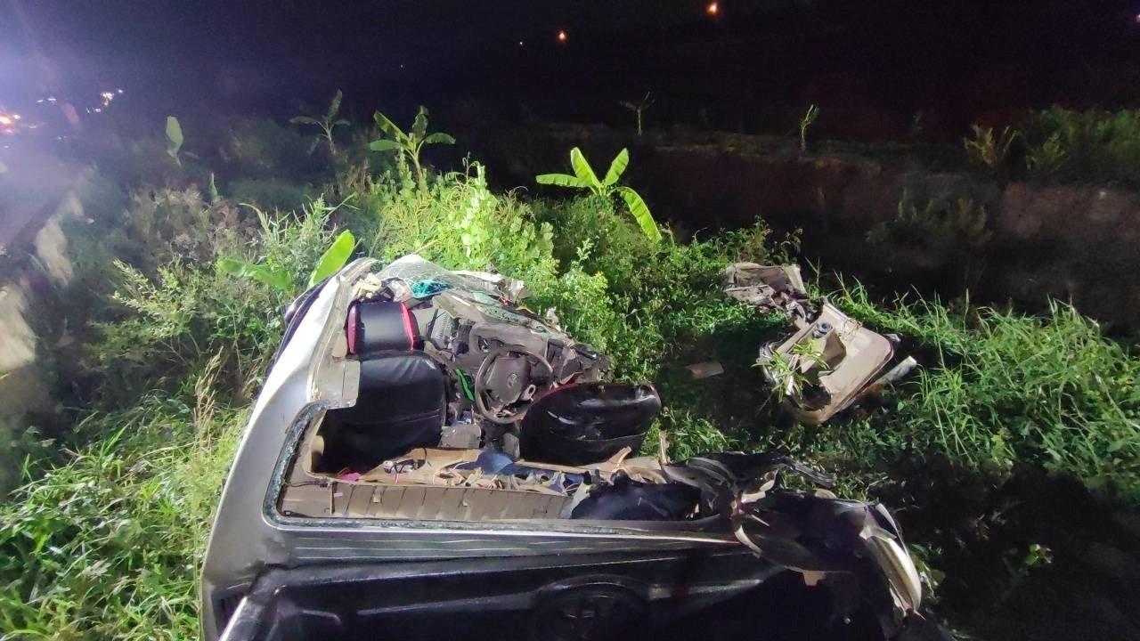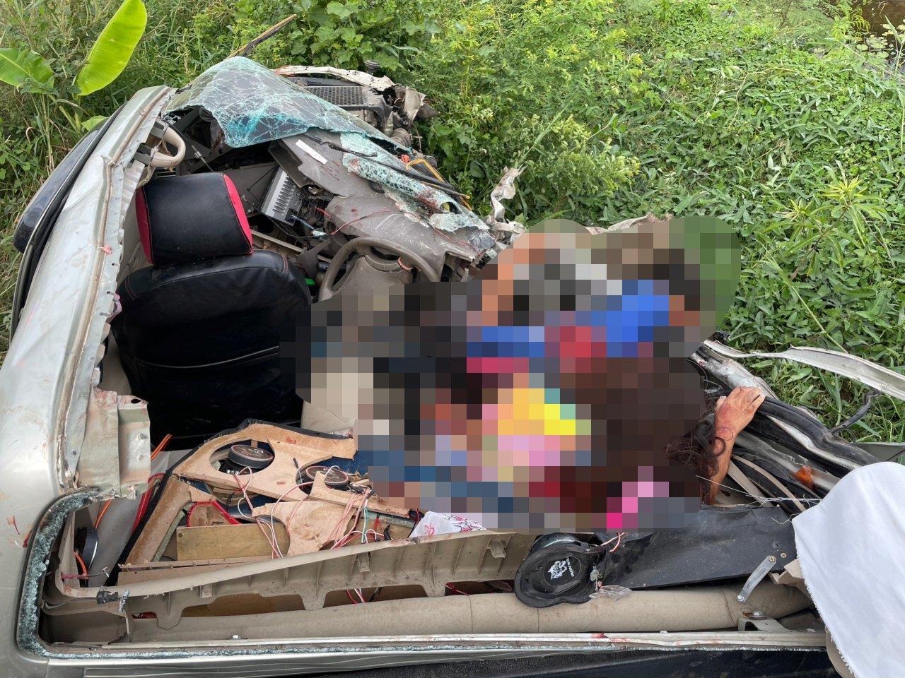 ที่เกิดเหตุพบรถสิบล้อพ่วงยี่ห้ออีซูซุ สีน้ำเงิน หมายเลขทะเบียนหัวพ่วง 53-3424 กรุงเทพมหานคร หมายเลขทะเบียนลูกพ่วง 53-3425 กรุงเทพมหานคร จอดอยู่ข้างทาง ด้านท้ายถูกชนจนได้รับความเสียหายพังยับเยินยางหลังซ้ายแตก ข้างกันพบรถยนต์กระบะยี่ห้อโตโยต้าวีโก้ แค็บ สีบรอนซ์ หมายเลขทะเบียน บท 8379 กาฬสินธุ์ ตกลงไปอยู่ริมไหล่ถนน สภาพด้านหน้าพังยับเยิน และหลังคารถเปิด