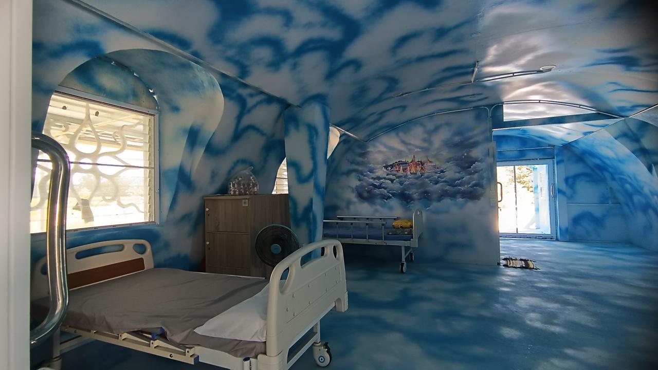 โดยเฉพาะในห้องของผู้ป่วยระยะสุดท้าย ที่ได้มีการจัดตกแต่งให้มีลักษณะคล้ายทิพย์วิมาน สวรรค์ชั้นฟ้า เพราะผู้ป่วยกลุ่มนี้กำลังมาสู่วาระสุดท้ายของชีวิต และการที่ได้อยู่ในสถานที่สวยงามคล้ายวิมานสวรรค์แล้ว ก็จะทำให้ผู้ป่วยรู้สึกดีคลายความวิตกกังวลและจากไปอย่างสงบ