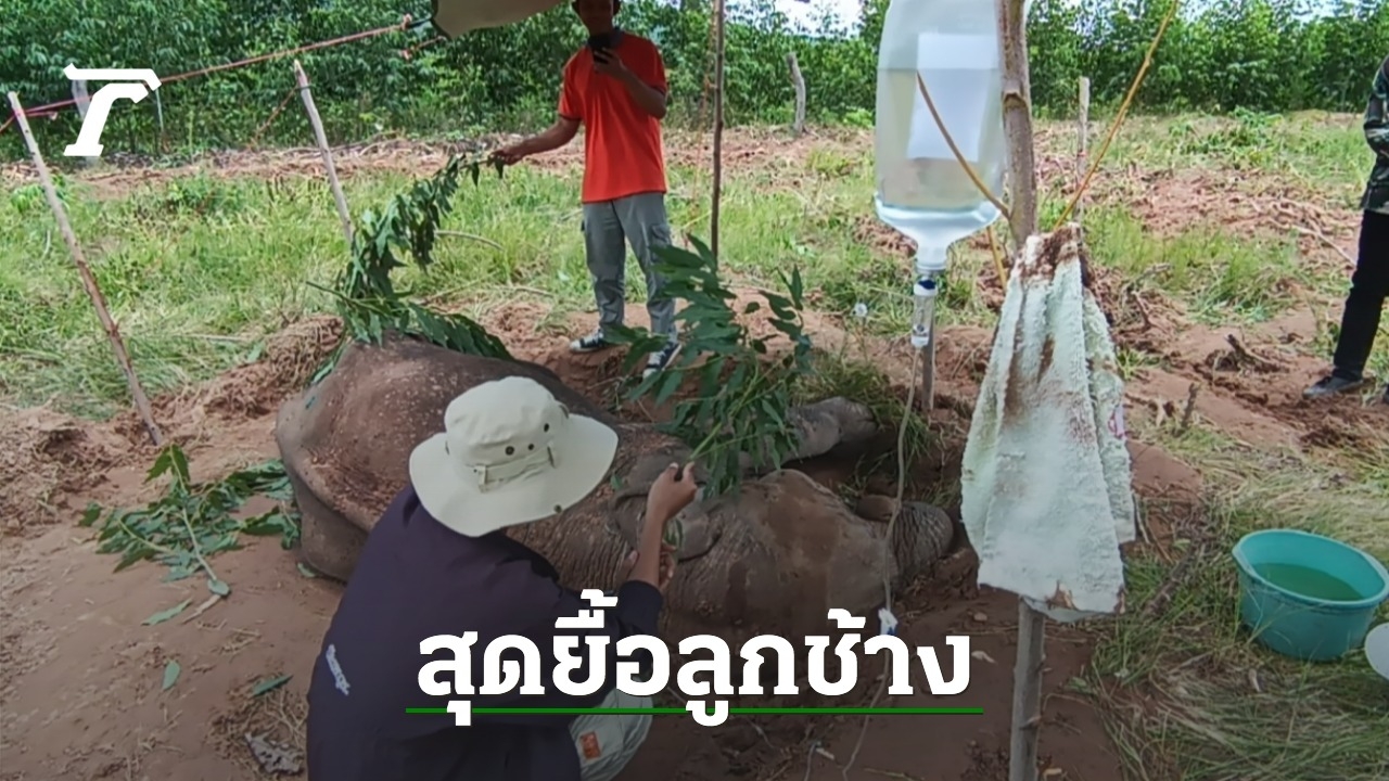 ช่วยเต็มที่แล้ว สุดยื้อลูกช้างป่าเพศผู้สภาพป่วยหนักล้มนอนในไร่มันสำปะหลังที่ครบุรี โคราช ทีมสัตวแพทย์ให้วิตามิน น้ำเกลือ เจาะเลือดส่งตรวจเพื่อหาสาเหตุป่วย แต่ลูกช้างอาการหนักสิ้นใจแล้ว