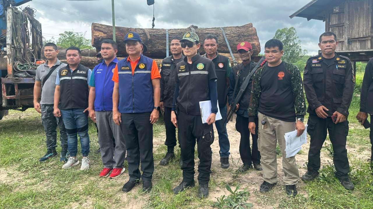 สำหรับกรณีตัดไม้ประดู่ในพื้นที่ ส.ป.ก.ครั้งนึ้ เกิดขึ้นเมื่อเวลาประมาณ 14.40 น. ของวันที่ 9 ก.ย. 66 โดยการอำนวยการของผู้อำนวยการสำนักจัดการทรัพยากรป่าไม้ที่ 7 นายอำเภอกุฉินารายณ์ ผู้กำกับการ สภ.กุฉินารายณ์ ผู้อำนวยการส่วนป้องกันรักษาป่าและควบคุมไฟป่า ผู้อำนวยการศูนย์ป่าไม้กาฬสินธุ์ ได้สั่งการให้เจ้าหน้าที่ชุดปฏิบัติการพิเศษป่าไม้กาฬสินธุ์ ร่วมกับเจ้าหน้าที่หน่วยป้องกันรักษาป่าที่ กส.5 (บัวขาว) เจ้าหน้าที่หน่วยป้องกันรักษาป่าที่ (ดงมูล) เจ้าหน้าที่หน่วยป้องกันรักษาป่าที่ กส.3 (ภูพาน) เจ้าหน้าที่หน่วยป้องกันรักษาป่าที่ กส.2 (ดงแม่เผด) ปลัดอำเภอกุฉินารายณ์ และเจ้าหน้าที่ตำรวจ สภ.กุฉินารายณ์ ได้ร่วมกันตรวจยึดรถเครน ยี่ห้ออีซูซุ สีขาว หมายเลขทะเบียน 43-0188 อุดรธานี จำนวน 2 คัน, รถเทรลเลอร์ หัวลาก ยี่ห้อฮีโน่ สีน้ำเงิน หมายเลขทะเบียน 70-4145 หนองคาย พร้อมพ่วงหมายเลขทะเบียน 70-327/3 เลย จำนวน 1 คัน, รถยนต์บรรทุก 10 ล้อ ยี่ห้อฮีโน่ สีขาว หมายเลขทะเบียน 70-3550 หนองคาย จำนวน 1 คัน, เลื่อยโซ่ยนต์ ยี่ห้อสติล สีส้ม-ขาว พร้อมบาร์โซ่ ไม่มีหมายเลขเครื่อง จำนวน 1 เครื่อง, เลื่อยโซ่ยนต์ ยี่ห้อเทารัส สีดำ-แดง พร้อมบาร์โซ่ ไม่มีหมายเลขเครื่อง พร้อมไม้ประดู่ จำนวน 72 ท่อน ปริมาตร 44.323 ลูกบาศก์เมตร