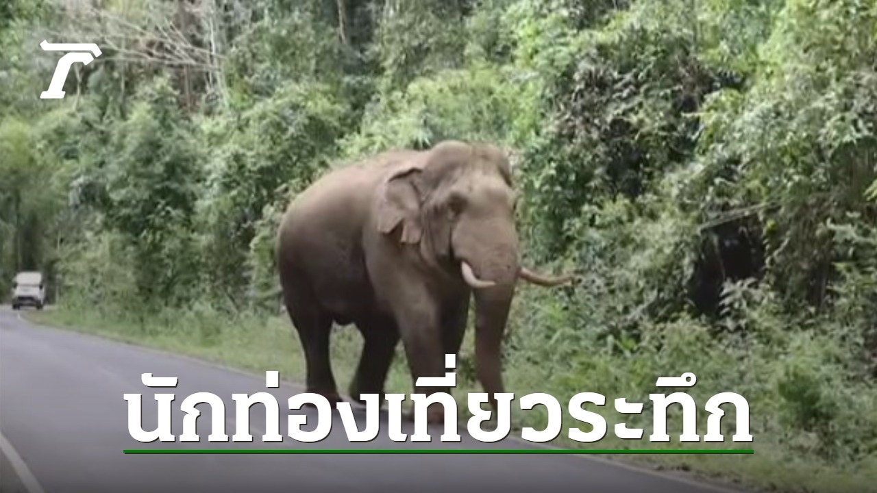 นักท่องเที่ยวผวา ขับรถขึ้นเขาใหญ่ เผชิญหน้า "พลายงาทอง" ถอยรถหนีระทึก จนท.เร่งผลักดันกลับป่า หวั่นทำร้าย นทท. เจ้าหน้าที่เตือนช่วงนี้เป็นฤดูผสมพันธุ์-ช้างตกมัน ควรทำตามคำแนะนำเคร่งครัด