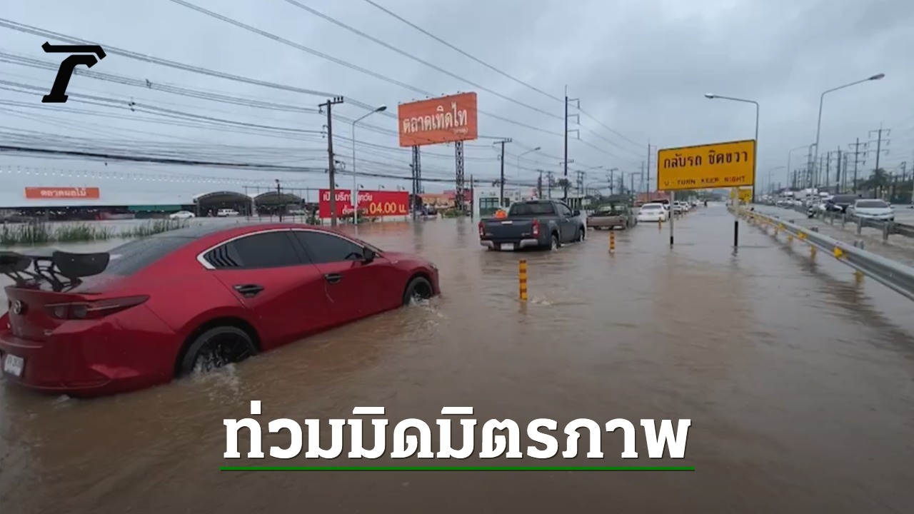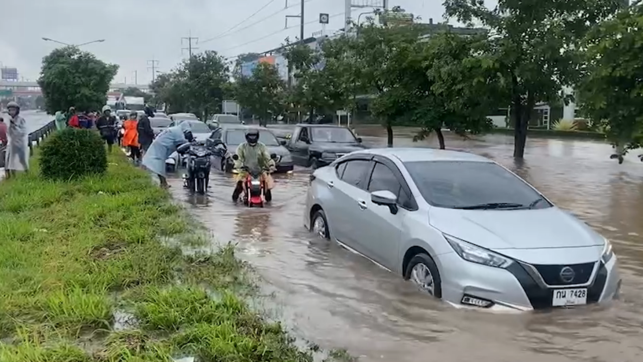 นอกจากนี้ปริมาณน้ำฝนยังได้เอ่อเข้าท่วมลานจอดรถด้านหน้าตลาดเทิดไท และบ้านเรือนประชาชนที่อาศัยอยู่ในบริเวณดังกล่าว จนต้องเร่งหาอุปกรณ์มาปิดกั้นทางน้ำ พร้อมกับเร่งสูบน้ำออกเพื่อป้องกันความเสียหาย ขณะเดียวกันที่บริเวณเกาะกลางถนนยังพบรถจักรยานยนต์นับสิบคันจอดอยู่บนเกาะกลางถนน เนื่องจากเครื่องยนต์ดับ และบางส่วนไม่กล้าที่จะขับฝ่ากระแสน้ำไป ซึ่งสถานการณ์ขณะนี้ถ้าไม่มีฝนตกลงมาเพิ่มเติม คาดว่าอาจใช้เวลาหลายชั่วโมงกว่าจะกลับเข้าสู่สภาวะปกติ.