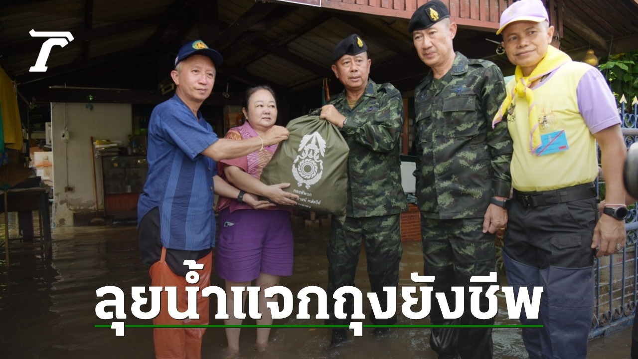 พร้อมกับนำถุงยังชีพจากกองทัพบกนำเครื่องอุปโภคบริโภค ข้าวกล่อง, น้ำดื่ม และเวชภัณฑ์ยาป้องกันน้ำกัดเท้า ไปมอบให้กับประชาชน ภายในหมู่บ้านไชยมงคล ซึ่งได้รับผลกระทบจากฝนตกหนัก และน้ำหลากเข้าท่วมเมื่อคืนที่ผ่านมา ปริมาณน้ำท่วมประมาณ 30-40 เซนติเมตร เพื่อบรรเทาความเดือดร้อนในเบื้องต้น