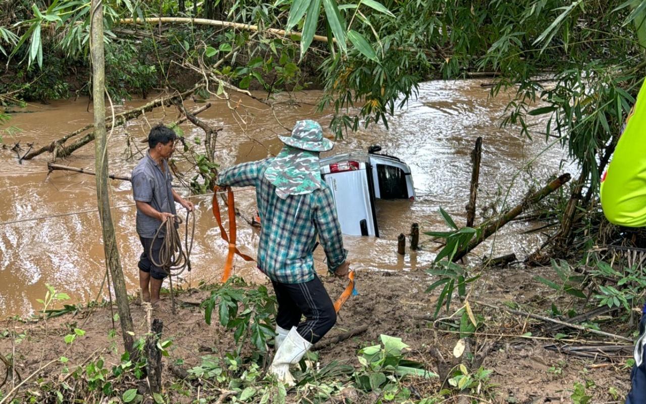 ปากช่องฝนตกทั้งคืน น้ำป่าไหลข้ามฝายน้ำล้น หนุ่มรับจ้างส่งไปรษณีย์เอกชนขับรถกระบะฝ่าข้าม โดนน้ำซัดรถลอยไปไกลกว่า 100 เมตร ชาวบ้านเห็นเหตุการณ์แต่ช่วยไม่ได้ ต้องตามแทรกเตอร์มาลากขึ้นที่ตื้น พบคนขับเสียชีวิตแล้ว