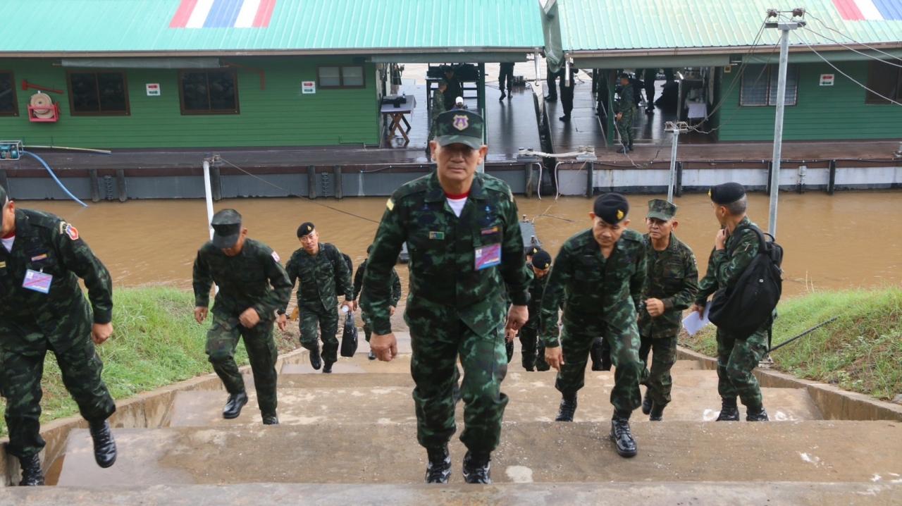 จากนั้น ผู้บัญชาการทหารบกและคณะ ได้เดินทางไปเยี่ยมให้กำลังใจและมอบสิ่งของบำรุงขวัญให้กับกำลังพล ณ สถานีเรือสังคม อ.สังคม จ.หนองคาย ซึ่งเป็นหน่วยในสังกัดหน่วยเรือรักษาความสงบเรียบร้อยตามลำแม่น้ำโขง ที่มาขึ้นควบคุมทางยุทธการกับกองกำลังสุรศักดิ์มนตรี โดยได้รับฟังการบรรยายสรุปและร่วมลาดตระเวนทางน้ำตามลำแม่น้ำโขง เพื่อตรวจความเรียบร้อยในพื้นที่ตามแนวชายแดน