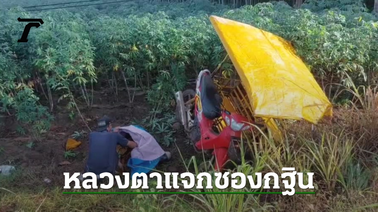 เหตุสลดก่อนวันออกพรรษา หลวงตาวัย 69 ขี่ จยย.พ่วงออกตระเวนแจกซองงานกฐินในหมู่บ้าน ฝนตกถนนลื่นรถเสียหลักตกข้างทางมรณภาพคาที่