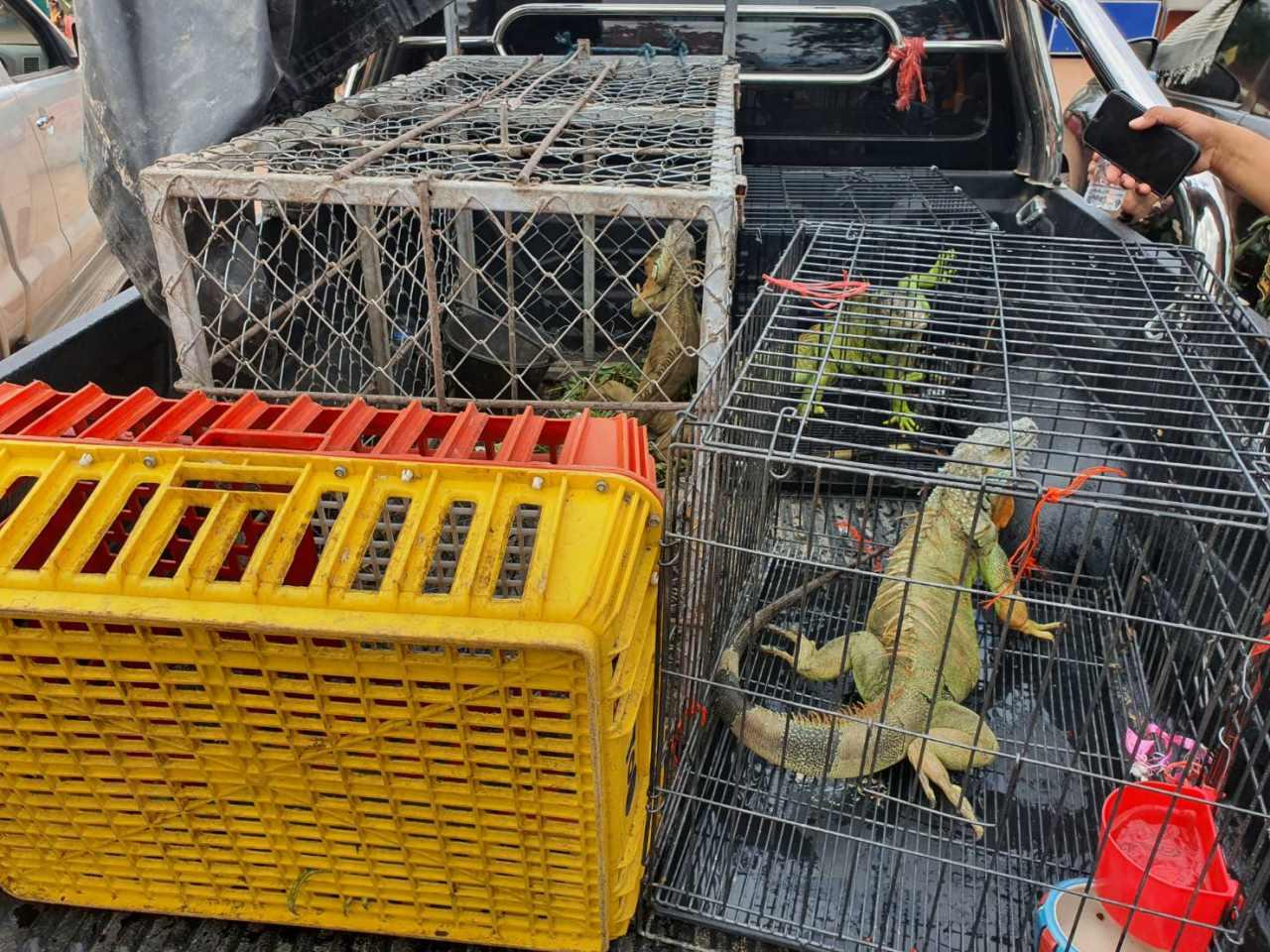วันที่ 16 พฤศจิกายน 2566 ที่วังนาคินทร์คำชะโนด อ.บ้านดุง จ.อุดรธานี นายสุชาติ ทอนมณี นายอำเภอบ้านดุง ร่วมกับนายสมบัติ สุภศร ผอ.ส่วนอนุรักษ์สัตว์ป่า สำนักบริหารพื้นที่อนุรักษ์ 10 (อุดรธานี) นายฤทธิรงค์ อรุณเดชาวัฒน์ หัวหน้าสวนรุกขชาติบ้านดุง นายประสิทธิ์ พุทธบูชา หัวหน้าด่านตรวจสัตว์ป่าหนองคาย นายอภิชา โคตรรัตน์ หัวหน้าศูนย์อนุรักษ์และช่วยเหลือสัตว์ป่าต่างประเทศ ภาคตะวันออกเฉียงเหนือ ลงพื้นที่จับตัวสัตว์ต่างถิ่น “อีกัวน่าเขียว” ในพื้นที่ป่าคำชะโนด สามารถจับได้ 3 ตัว ขนาดยาว 50 ซม. 2 ตัว และ 20 ซม. 1 ตัว